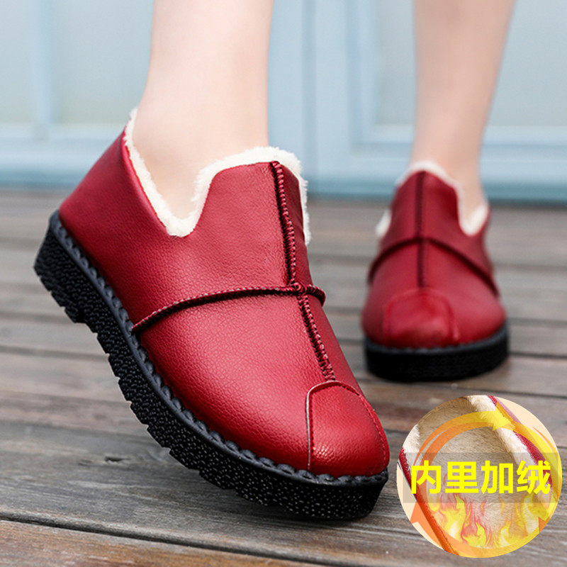 豆豆鞋女冬季加绒毛毛棉鞋妈妈鞋中老年软底舒适一脚蹬老北京布鞋