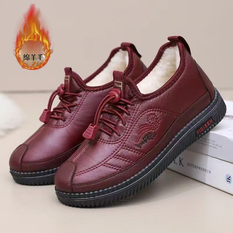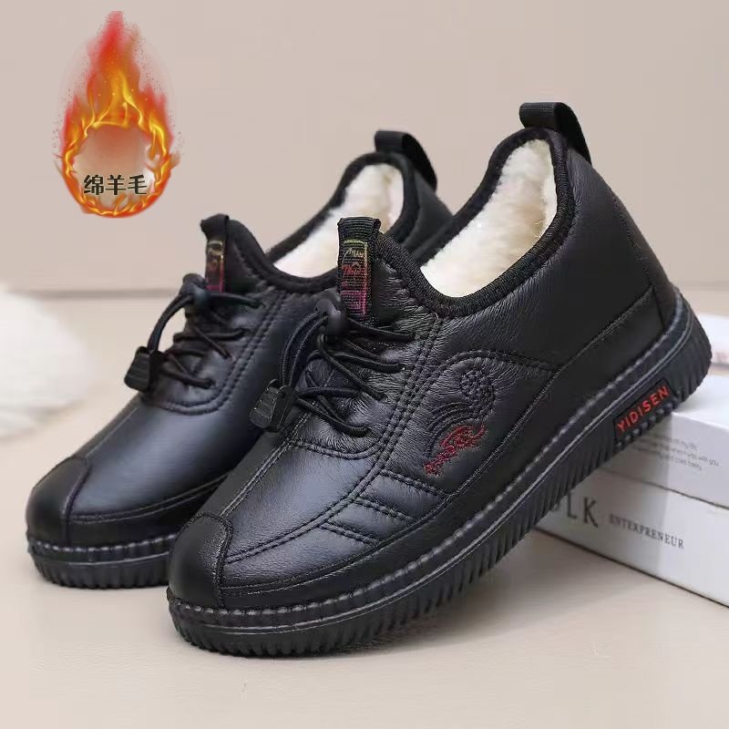 加绒加厚冬季女士棉鞋妈妈鞋外穿平底防滑轻便豆豆鞋保暖舒适轻便