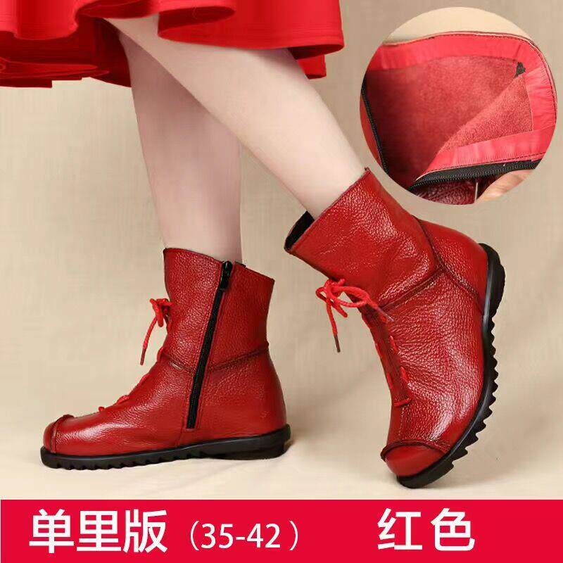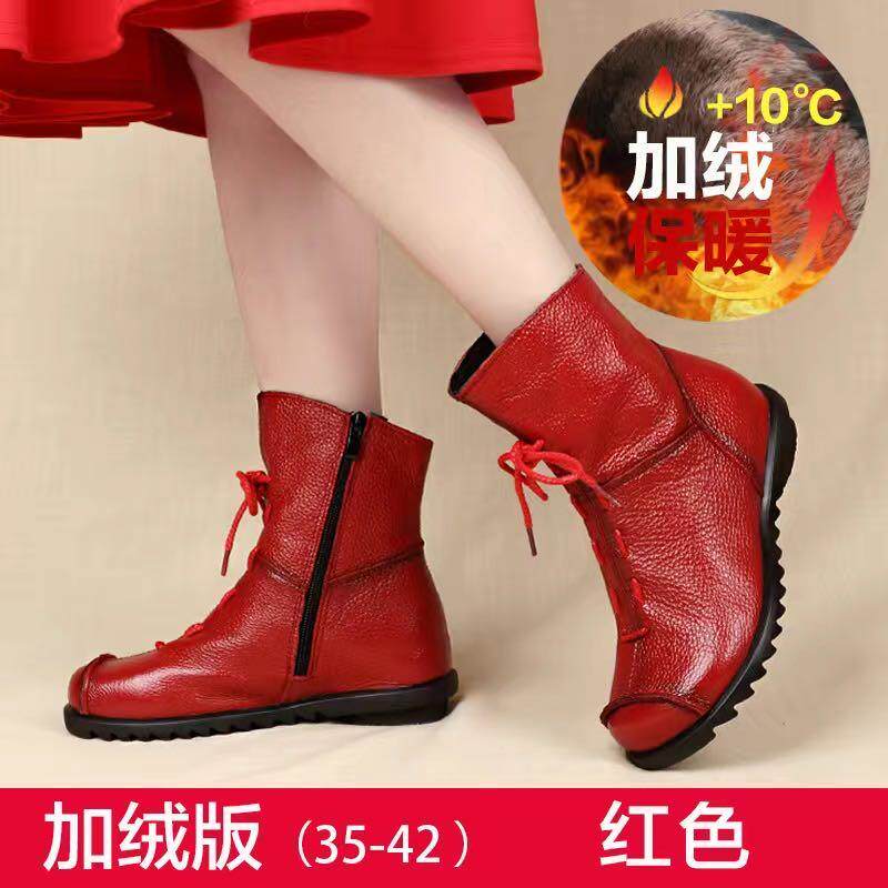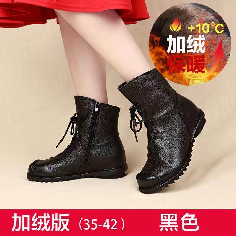 淘宝高档棉靴冬覆靴真舒古女鞋春秋马丁靴皮女靴软底休闲妈妈鞋适骑士