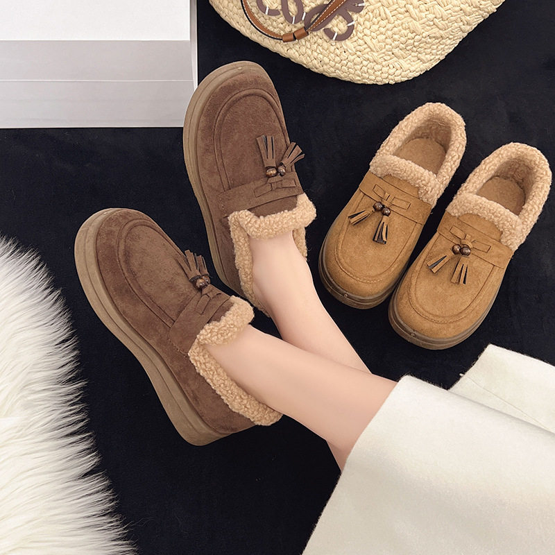 豆豆鞋女冬季加绒毛毛棉鞋妈妈鞋中老年软底舒适一脚蹬老北京布鞋