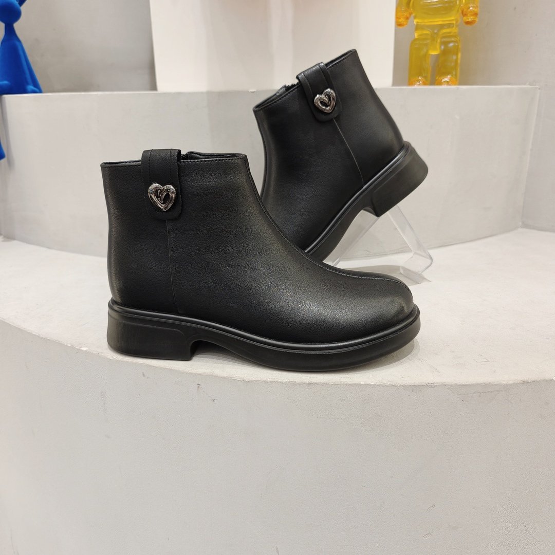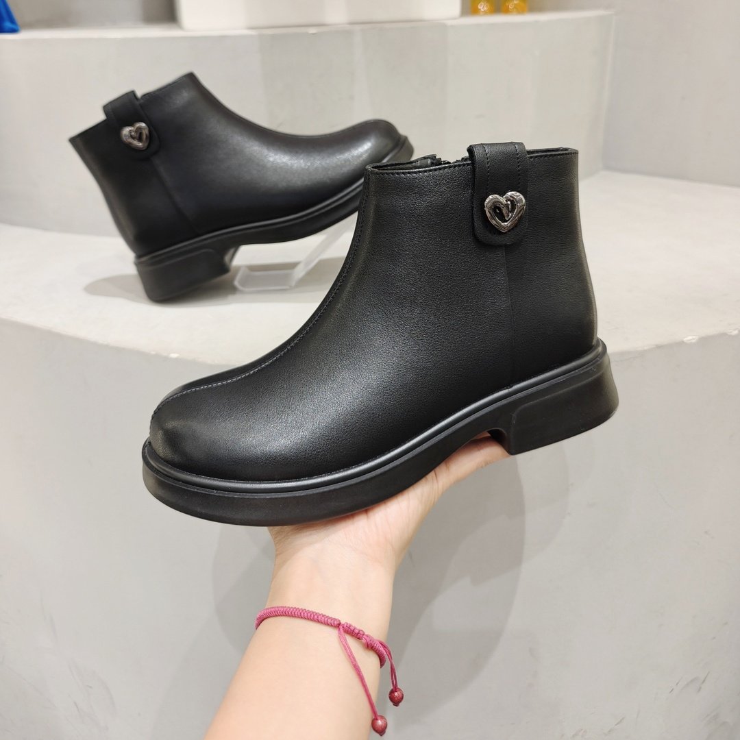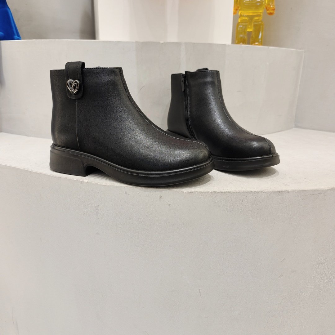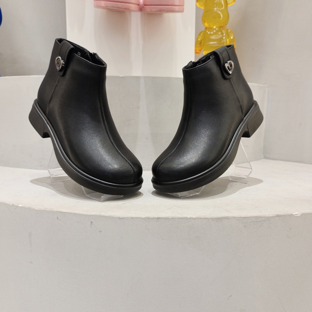 淘宝冰洁女鞋2025冬季款短靴真皮低跟粗跟圆头软底加绒妈妈鞋06270-9