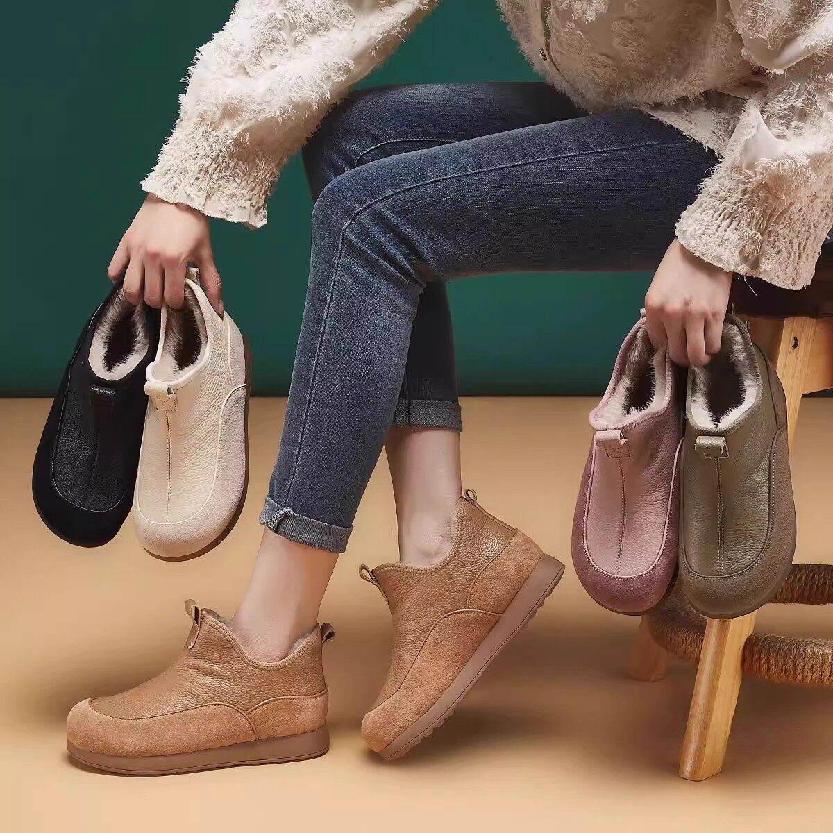 淘宝品牌撤柜真皮雪地靴女加绒加厚保暖棉鞋软底一脚蹬中老年妈妈鞋