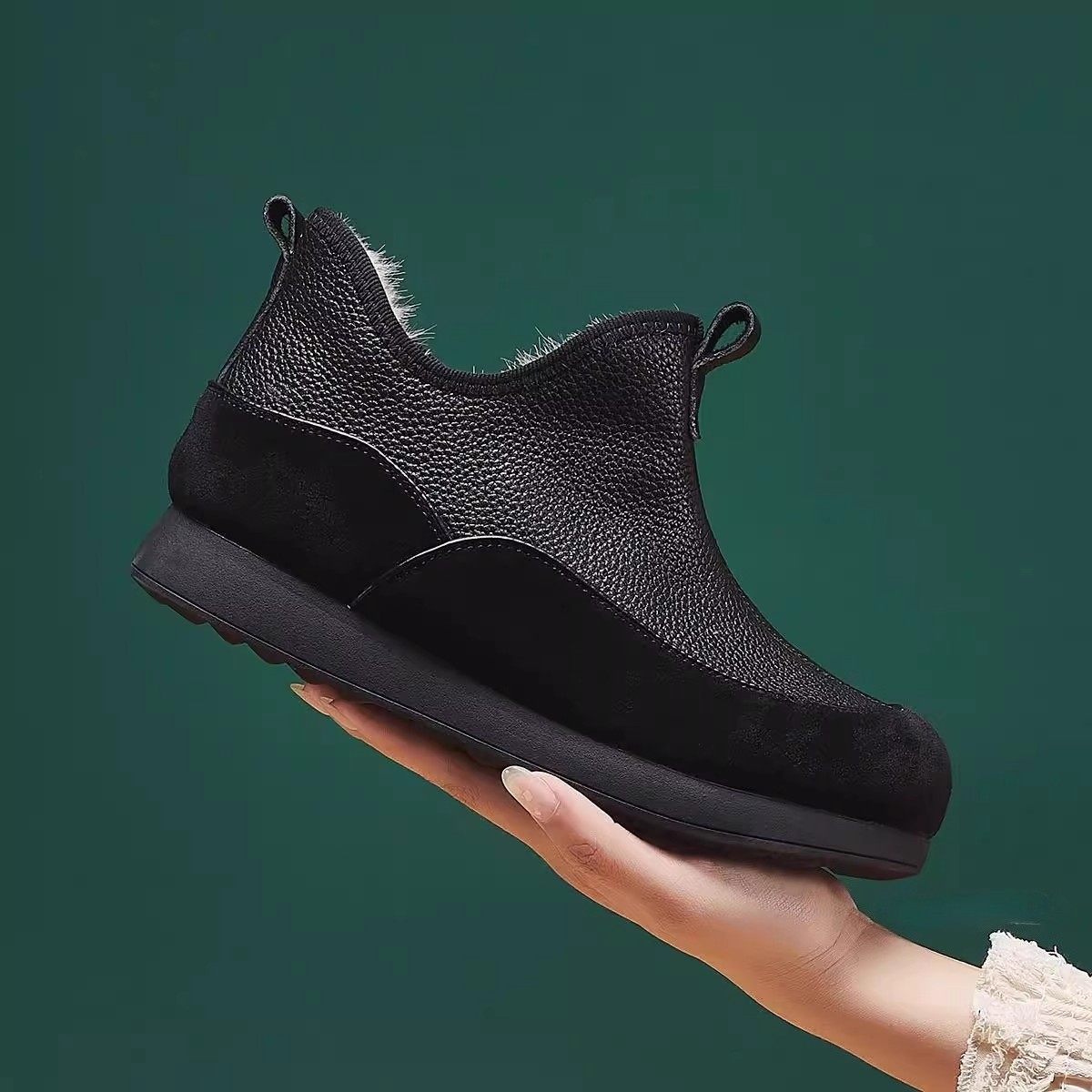 这款专为中老年妈妈设计的真皮雪地靴,采用优质头层牛皮,柔软透气,经久耐穿。内里加绒加厚,保暖性极佳,轻松应对寒冷冬季。一脚蹬设计穿脱便捷,特别适合行动不便或追求舒适的妈妈群体。软底轻盈缓震,行走稳健不累脚,防滑耐磨大底提升安全系数。简约大方的外观搭配经典配色,既实用又显气质。无论是居家、散步还是短途出行,都能提供全天候温暖呵护。品牌撤柜清仓,性价比超高,是送给妈妈贴心又实用的冬季好礼,让爱在每一步中传递温暖与关怀。