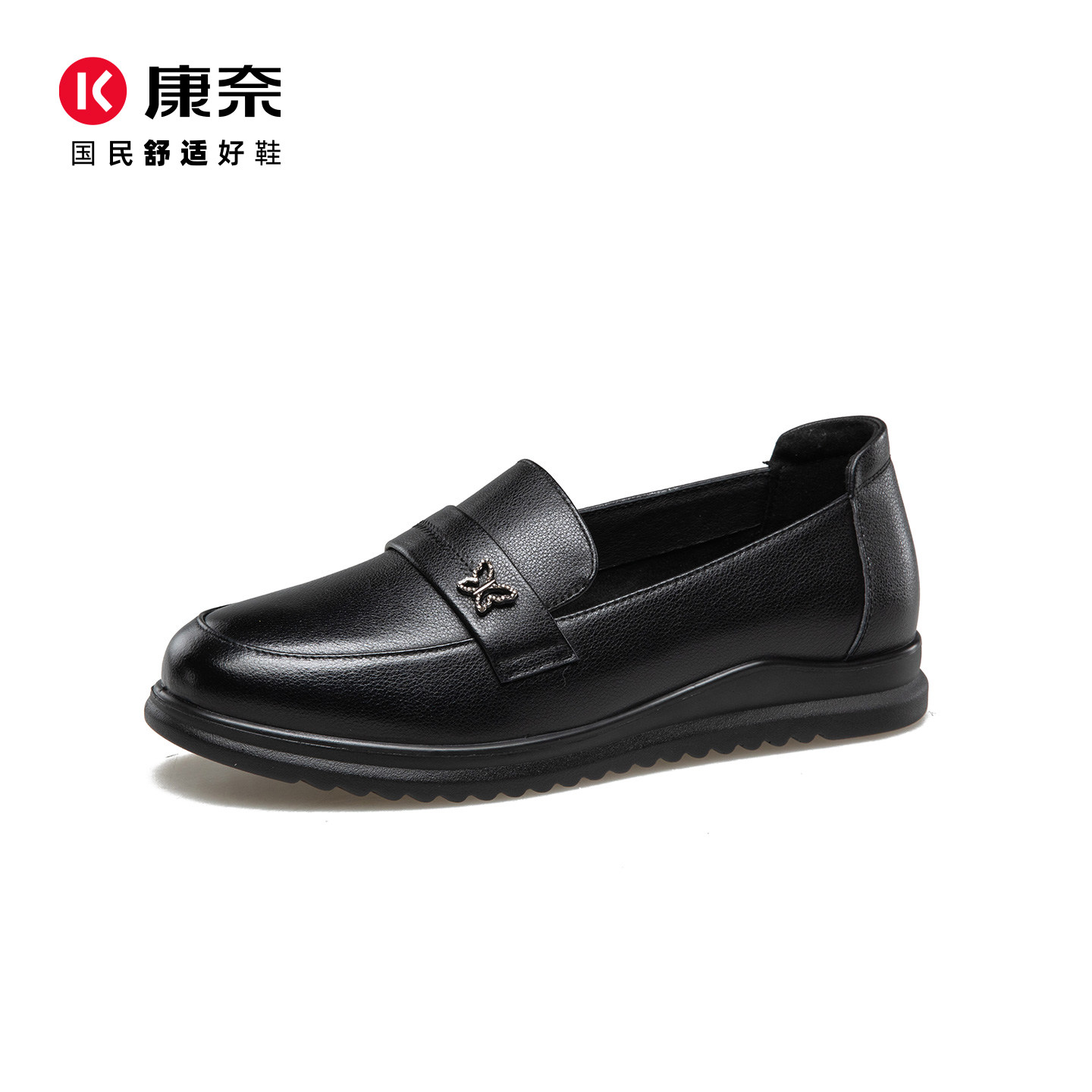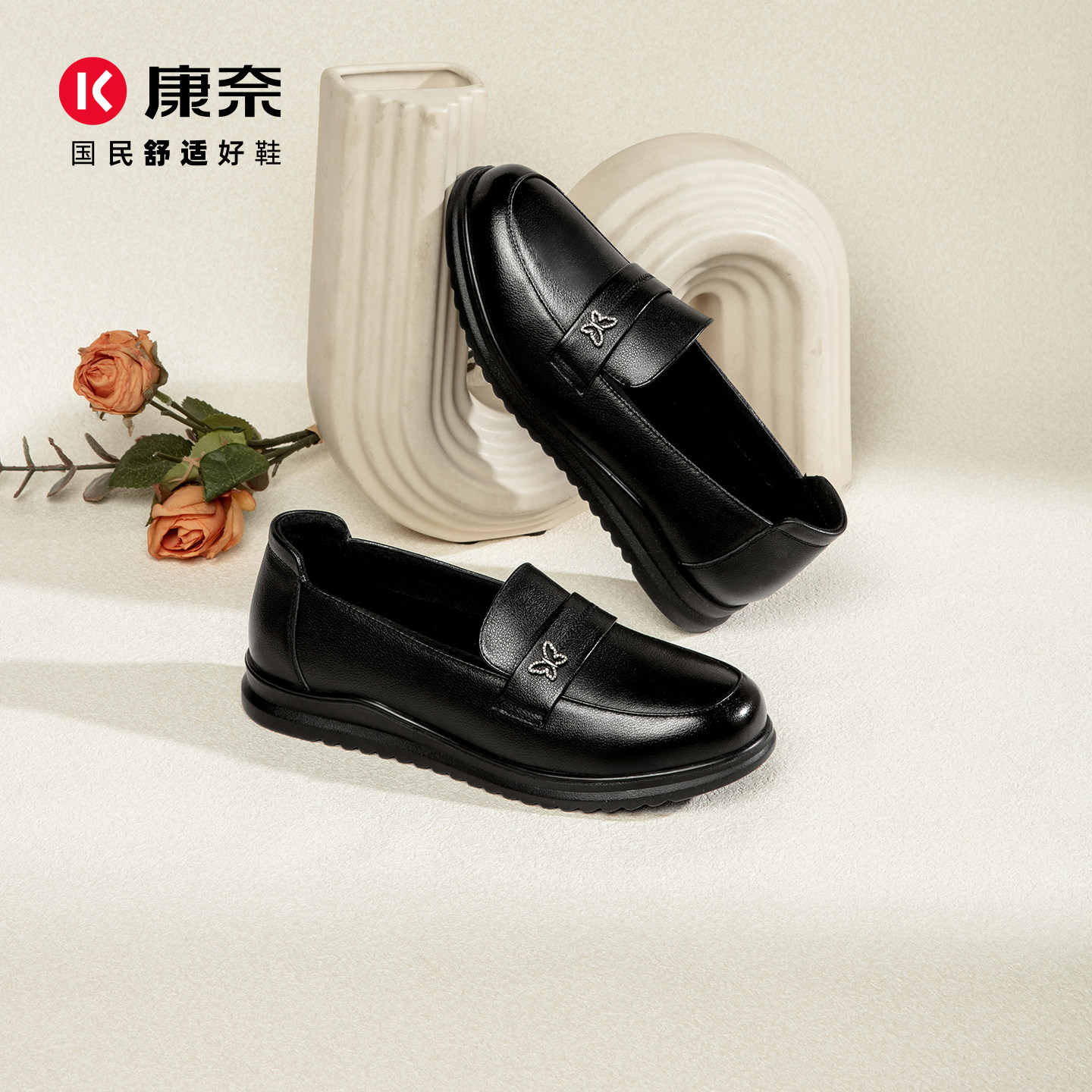 天猫康奈女鞋2026春季新款皮鞋软底防滑妈妈鞋子中老年舒适不累脚单鞋