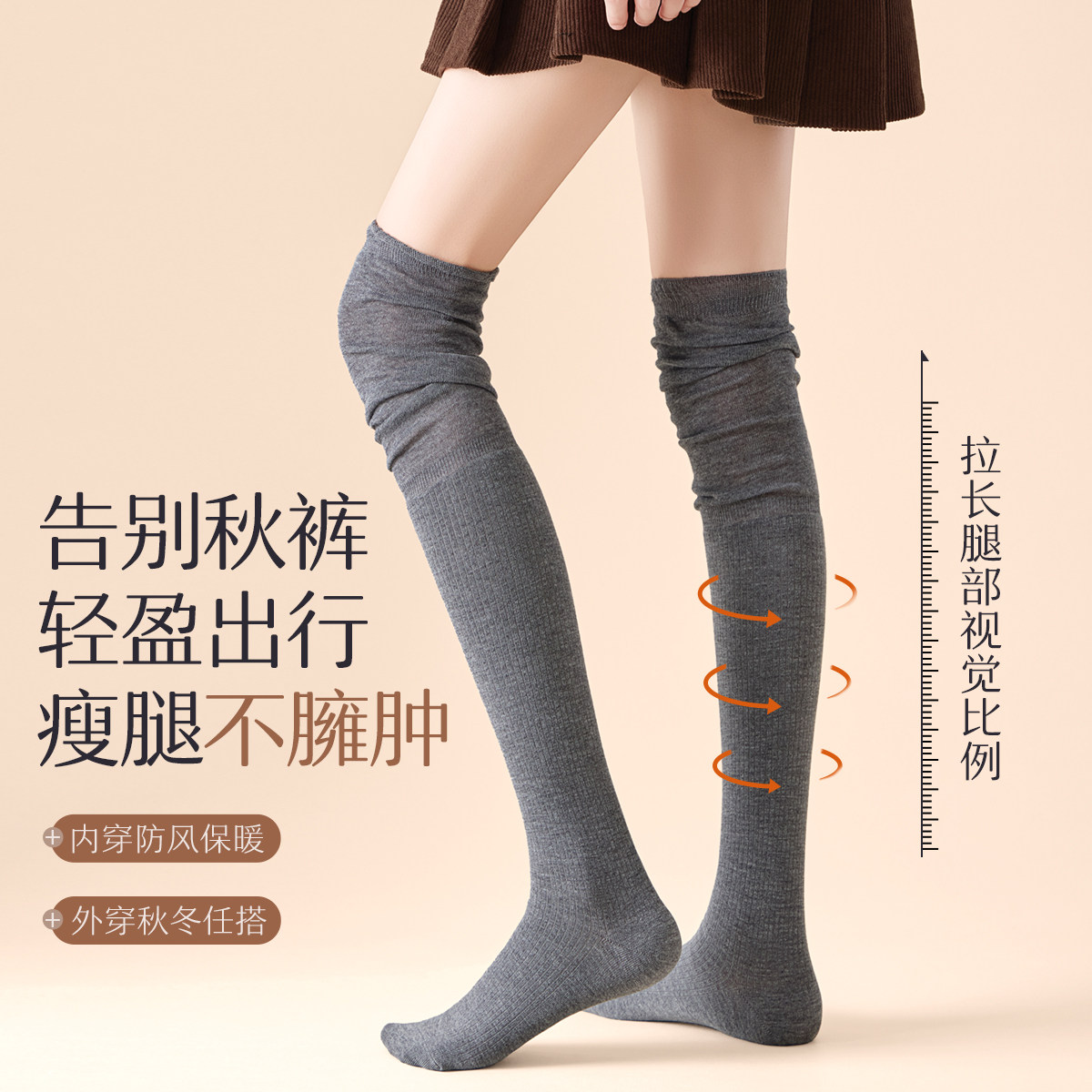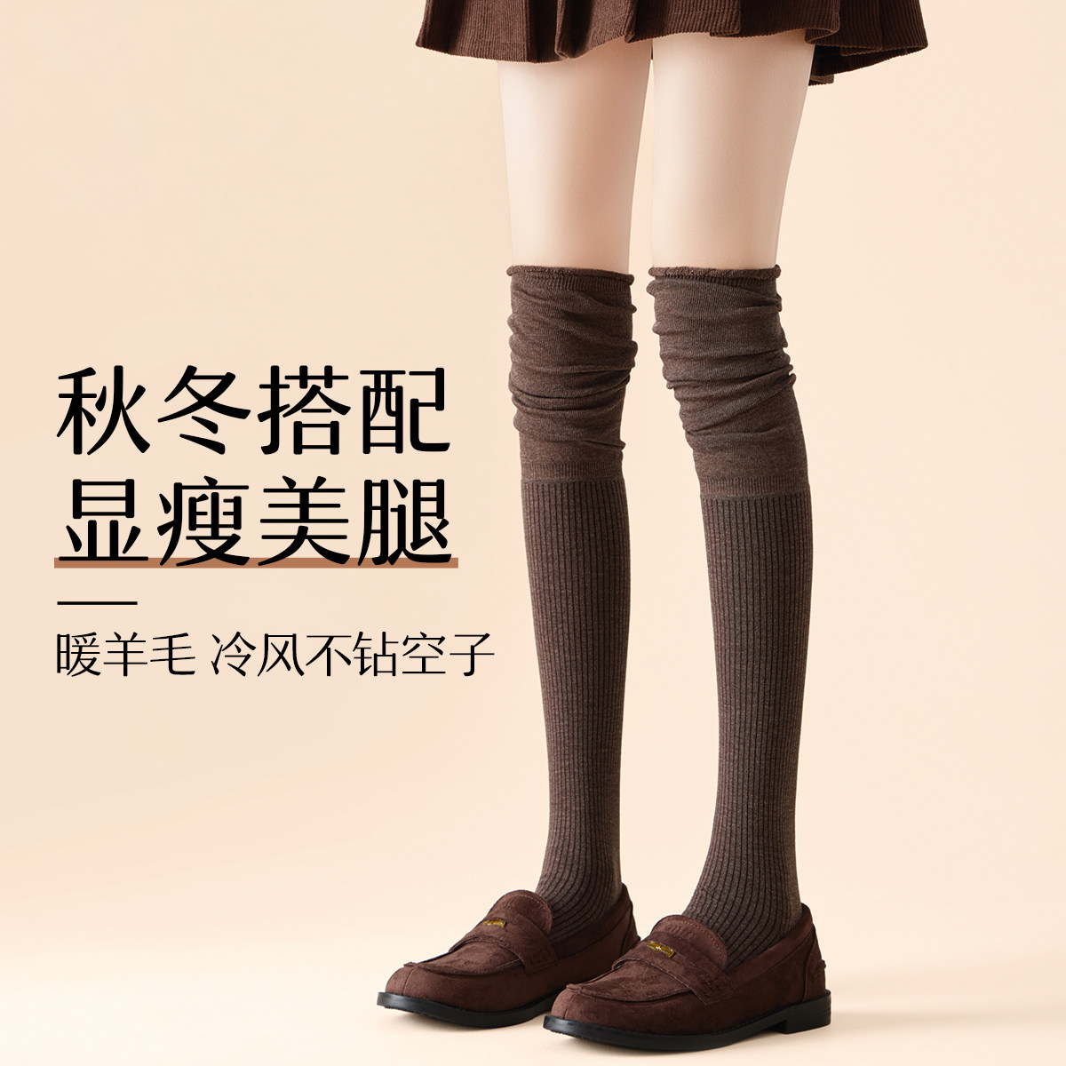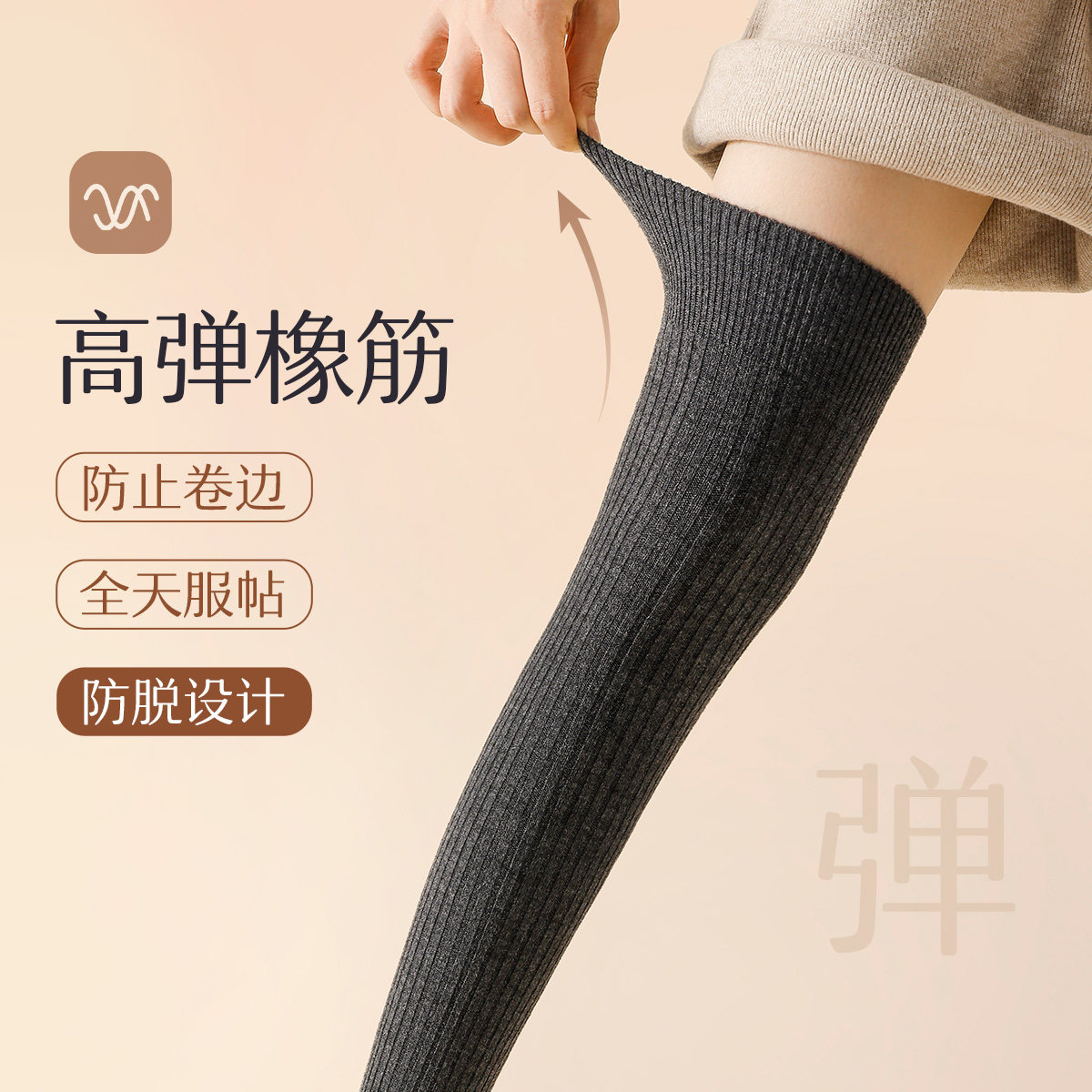 天猫羊毛过膝袜孕妇秋冬季咖色保暖蓄热长筒大腿袜防下滑黑灰色小腿袜