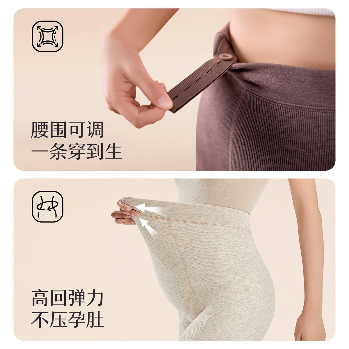 淘孕妇托腹裤打底裤袜春秋薄款棉竖条纹保暖可调节连裤袜不勒加绒