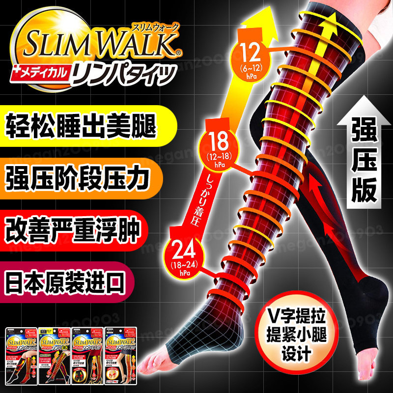 淘宝日本瘦腿袜美腿强压力Slimwalk长筒爽睡眠连裤袜女显日本秋女孕妇