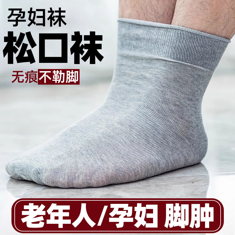 天猫老年人松口袜子老人不勒脚女孕妇袜松口袜纯棉脚肿宽松脚胖月子袜