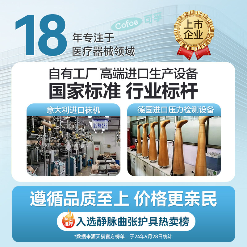 可孚医用静脉曲张弹力袜是一款专为预防和治疗静脉曲张、深静脉血栓等下肢循环问题设计的医疗级压力护具。采用循序减压技术,从脚踝至腿部逐渐递减压力,有效促进血液回流,缓解腿部酸胀、肿胀及疲劳感。适用于久站久坐人群、术后康复者、孕妇及静脉曲张患者。产品符合医用标准,材质透气舒适,弹性持久,男女通用,提供多种压力等级和尺寸选择。经专业认证,兼具治疗与预防功能,是守护下肢健康的理想之选。坚持穿戴,可显著改善血液循环,降低血栓风险,提升生活质量。