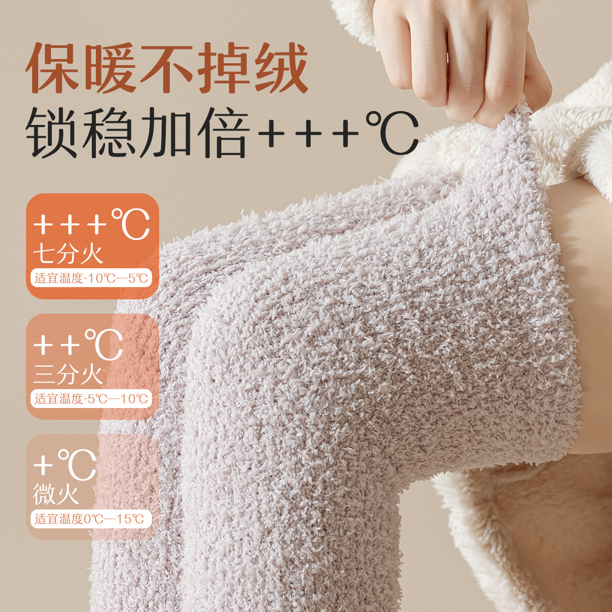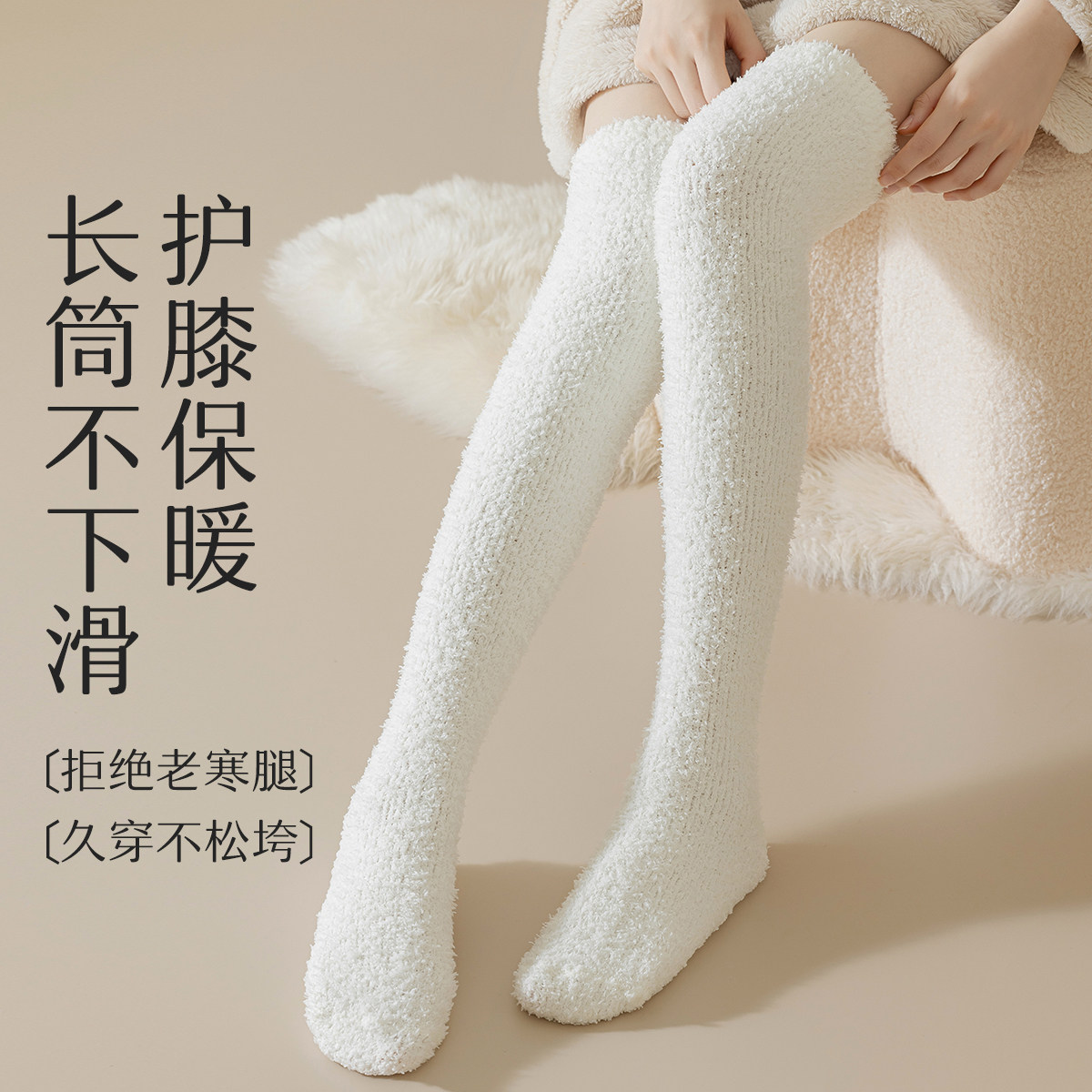 天猫珊瑚绒过膝袜子女秋冬季长筒护膝加绒加厚孕妇产后月子家居睡眠袜