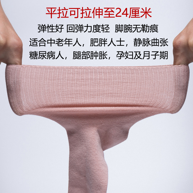 松口袜女棉质中筒袜老人妈妈脚肿宽口不勒脚秋冬季孕妇纯色月子袜