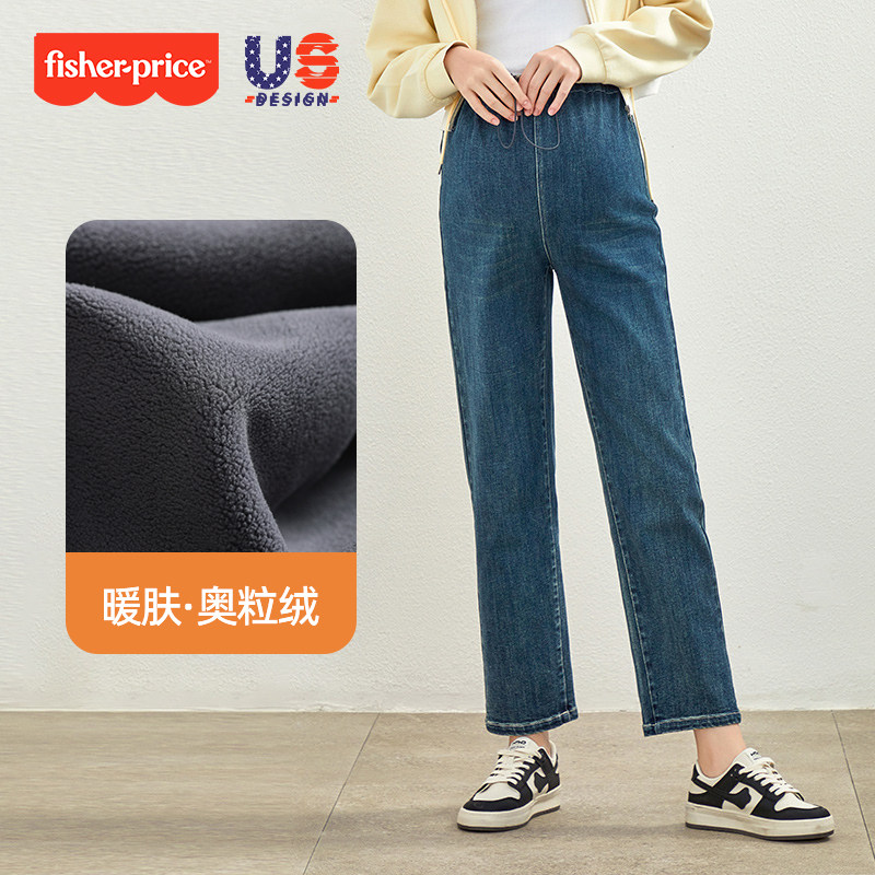 天猫费雪孕妇牛仔裤秋冬季外穿大码不勒肚子孕早期裤加绒小个子直筒裤