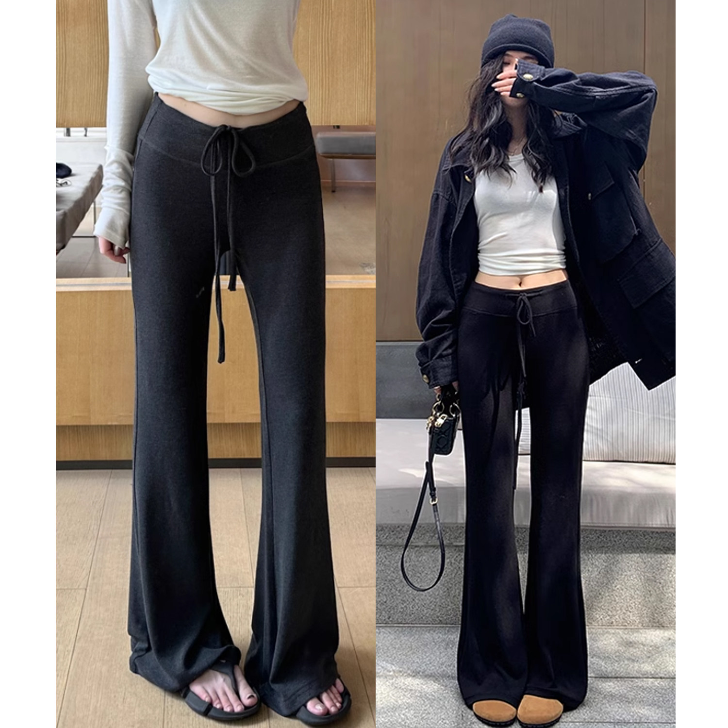 天猫孕妇喇叭裤子外穿秋冬季加绒加厚2025新款孕期不勒肚子阔腿打底裤