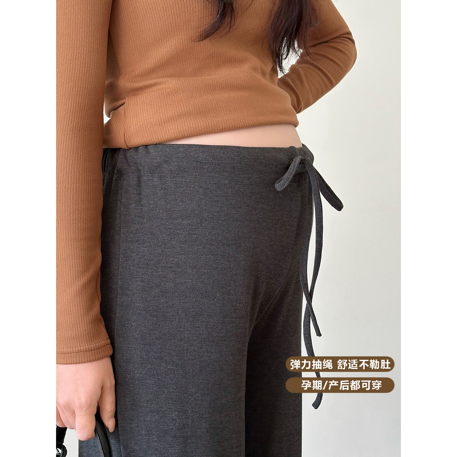 孕妇糯米阔腿裤春秋冬外穿打底裤加绒加厚托腹长裤子冬装休闲肚子