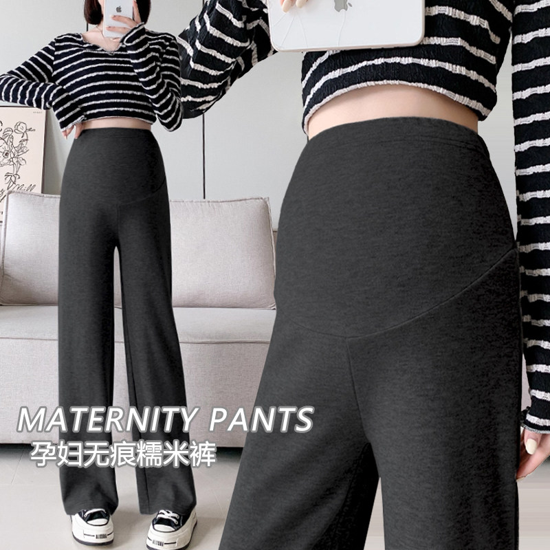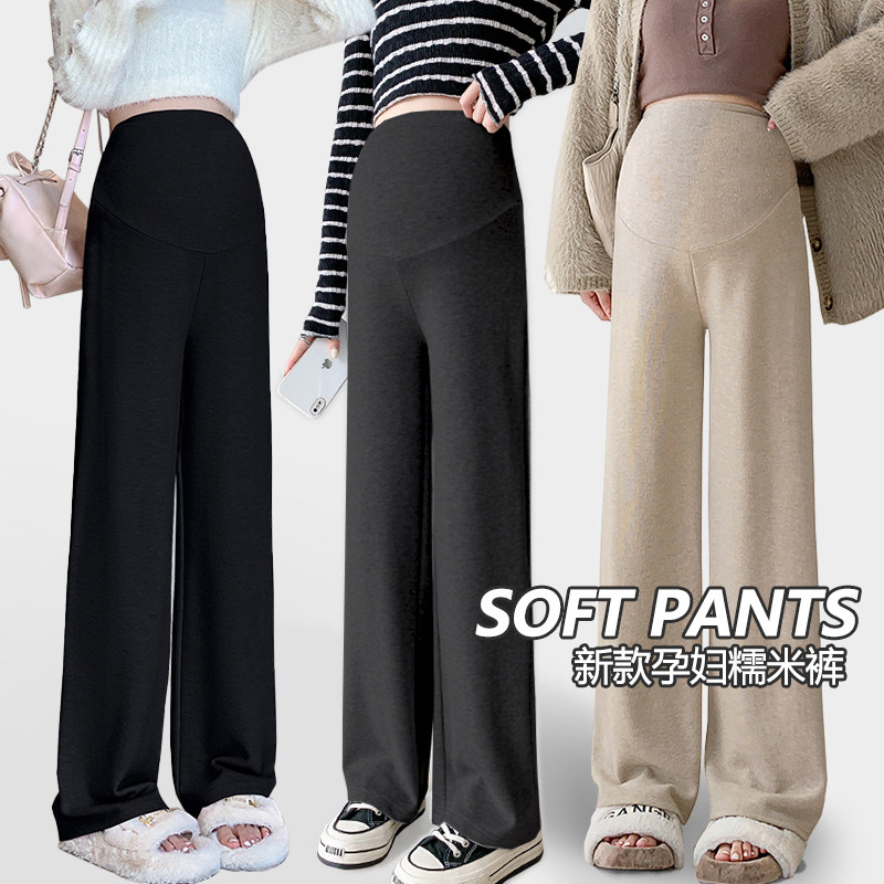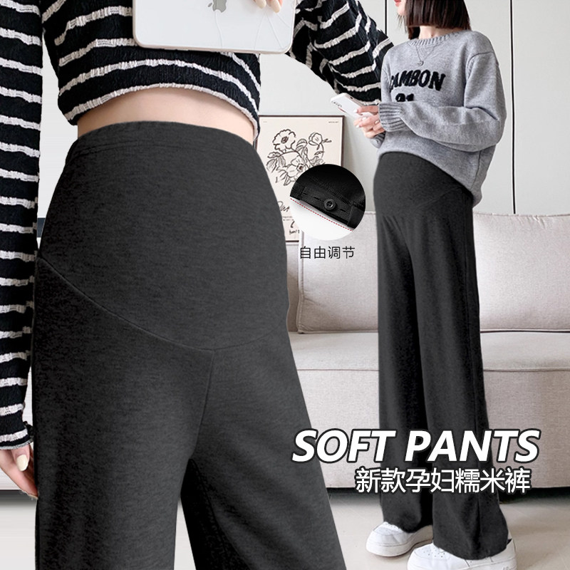 孕妇糯米阔腿裤春秋冬外穿打底裤加绒加厚托腹长裤子冬装休闲肚子