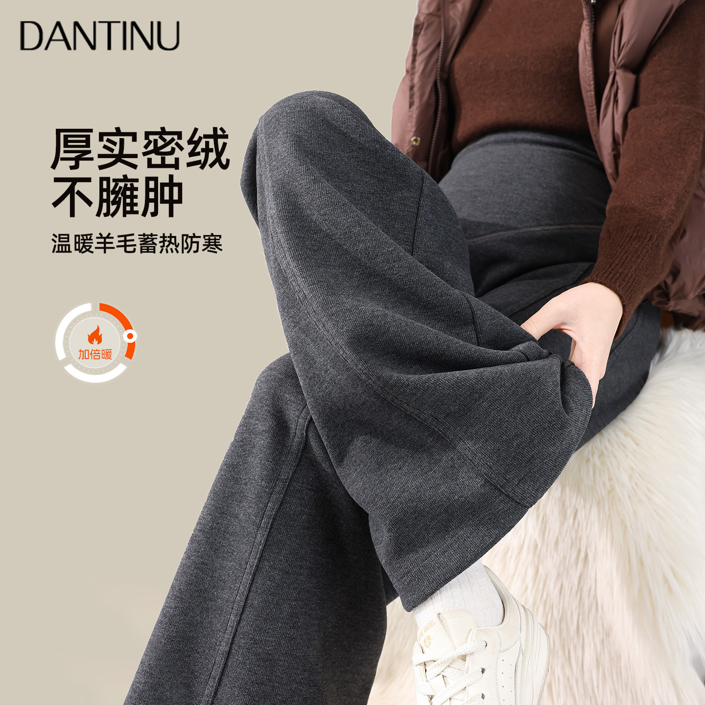 天费雪孕妇裤子秋冬季外穿不勒肚子阔腿裤冬款加绒加厚大码直筒长裤