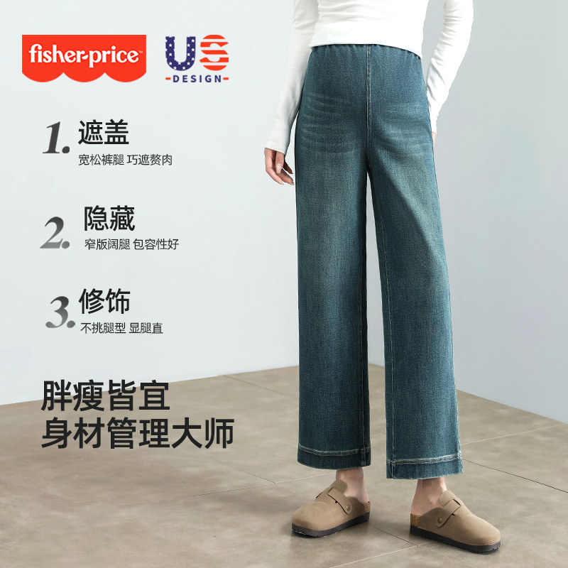 天孕妇牛仔裤秋季外穿无托腹阔腿裤大码秋冬季加绒加厚直筒抽绳长裤