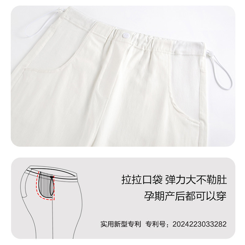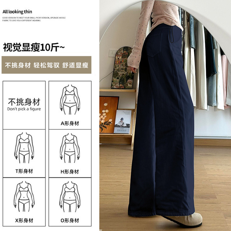 天孕妇牛仔裤秋季外穿无托腹阔腿裤大码秋冬季加绒加厚直筒抽绳长裤