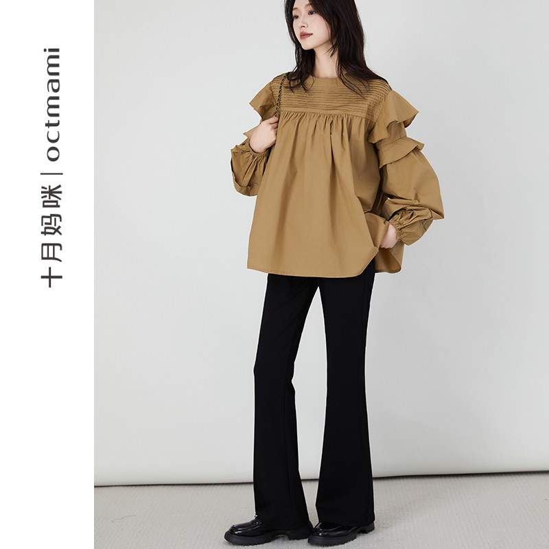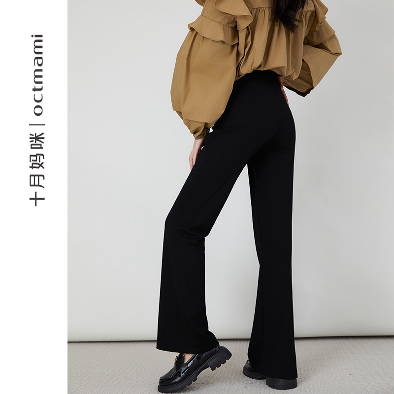 天猫十月妈咪孕妇喇叭裤子秋冬穿宽松不勒肚显瘦微喇马蹄西装长裤秋装