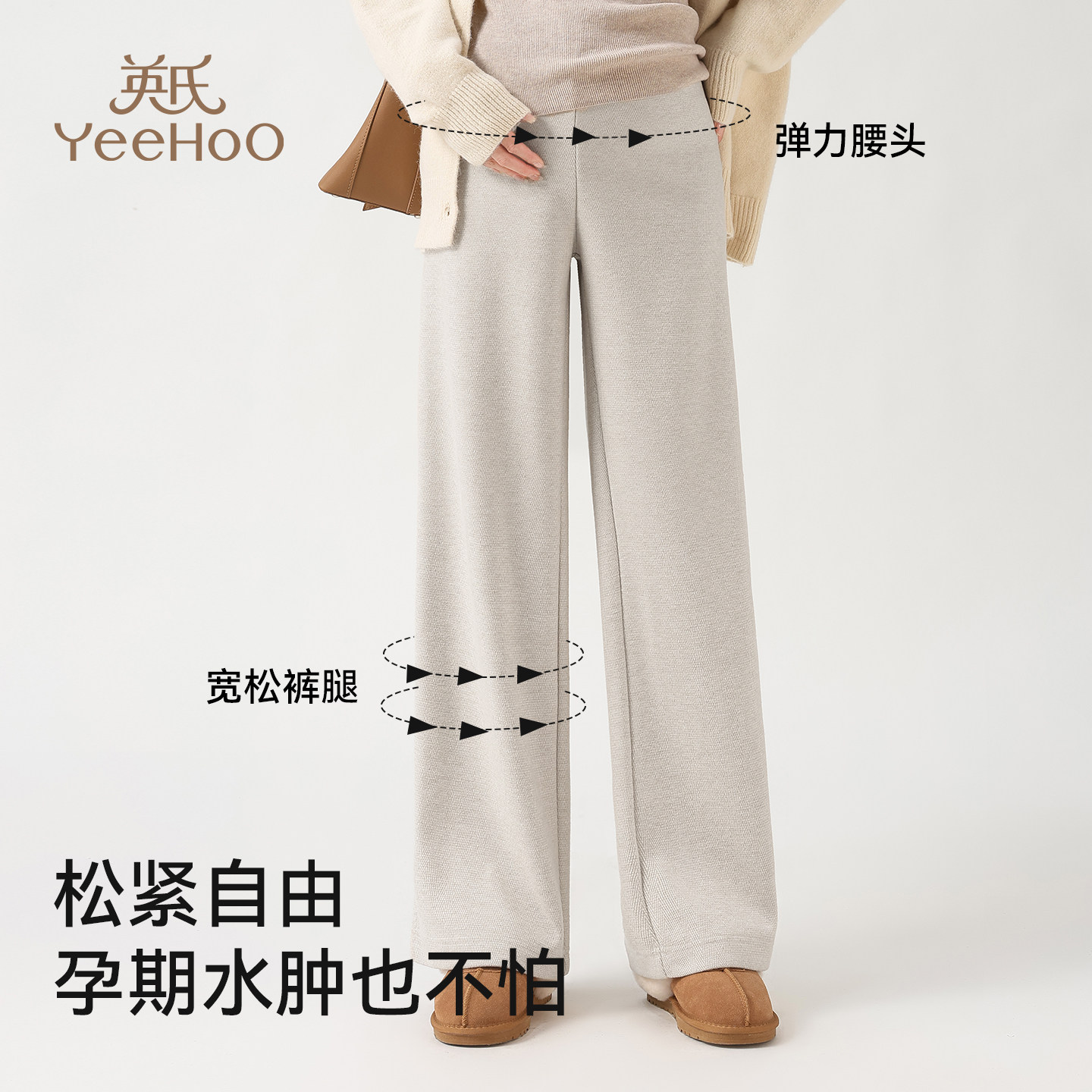 天猫英氏孕妇直筒裤冬季外穿显瘦百搭羊毛休闲裤2025新款无托腹阔腿裤