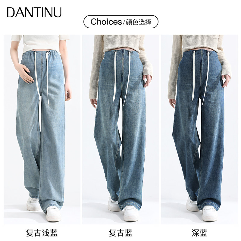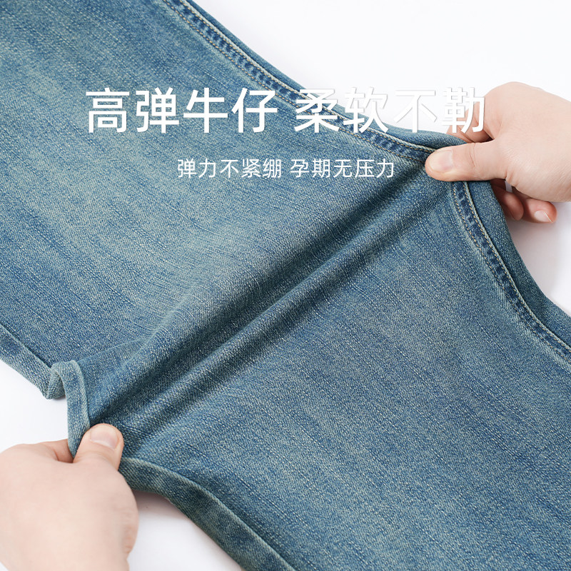 天猫孕妇牛仔裤秋季外穿无托腹阔腿裤大码秋冬季加绒加厚直筒抽绳长裤