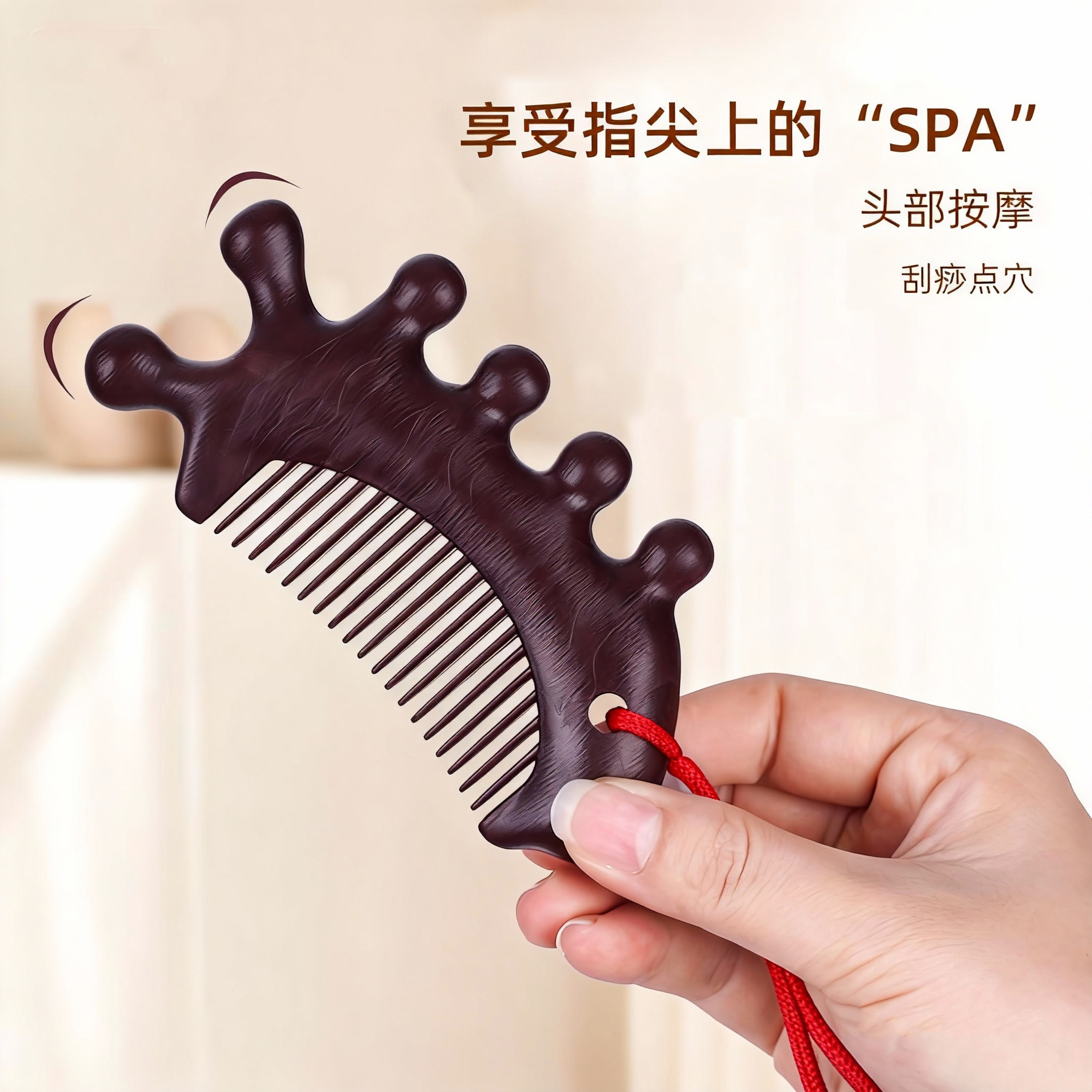 这款多功能头皮按摩梳集护发、按摩、刮痧于一体,采用人体工学设计,梳齿圆润不伤头皮。不仅能有效梳理秀发、减少打结,还可用于头部按摩,促进血液循环,缓解疲劳与压力。搭配刮痧功能,可疏通头部经络,改善睡眠质量。轻巧便携,适合居家、旅行使用。此外,梳子边缘设计还可用于面部与眼部轻柔刮痧,帮助提拉紧致、舒缓浮肿。材质安全环保,握感舒适,是日常护理与养生保健的理想之选。一梳多用,轻松打造健康头皮与焕亮肌肤,是现代人追求便捷高效护理的贴心好物。