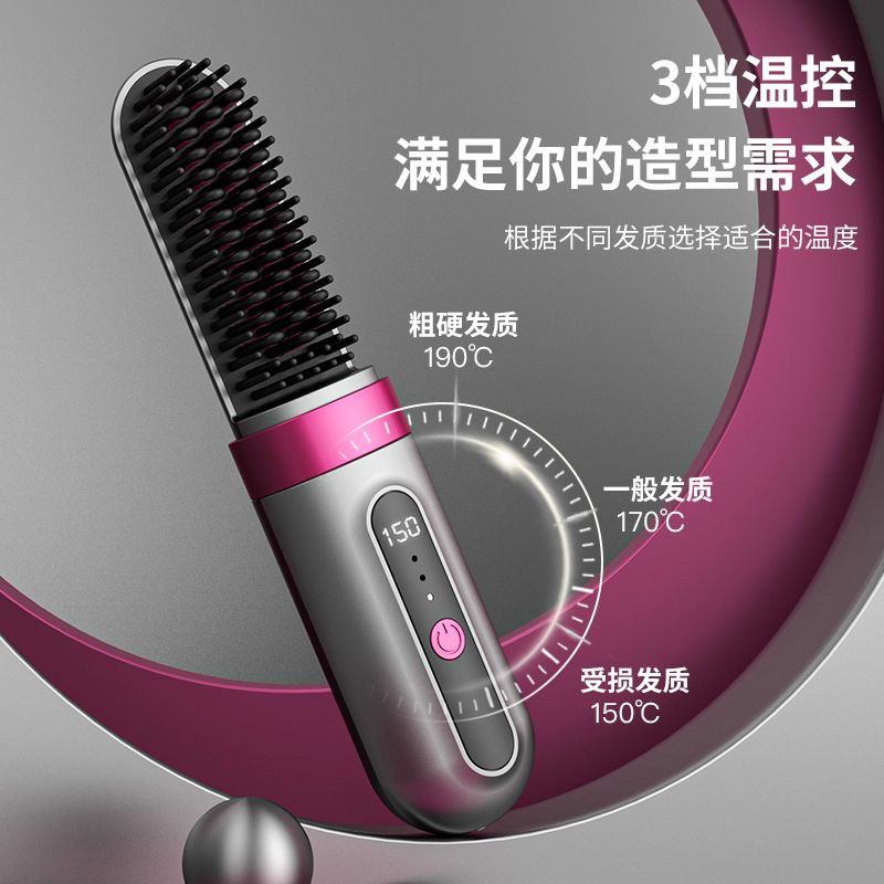 无线 线快速直发梳 负离子不伤发 长续航充电直板夹梳子便捷蓬松
