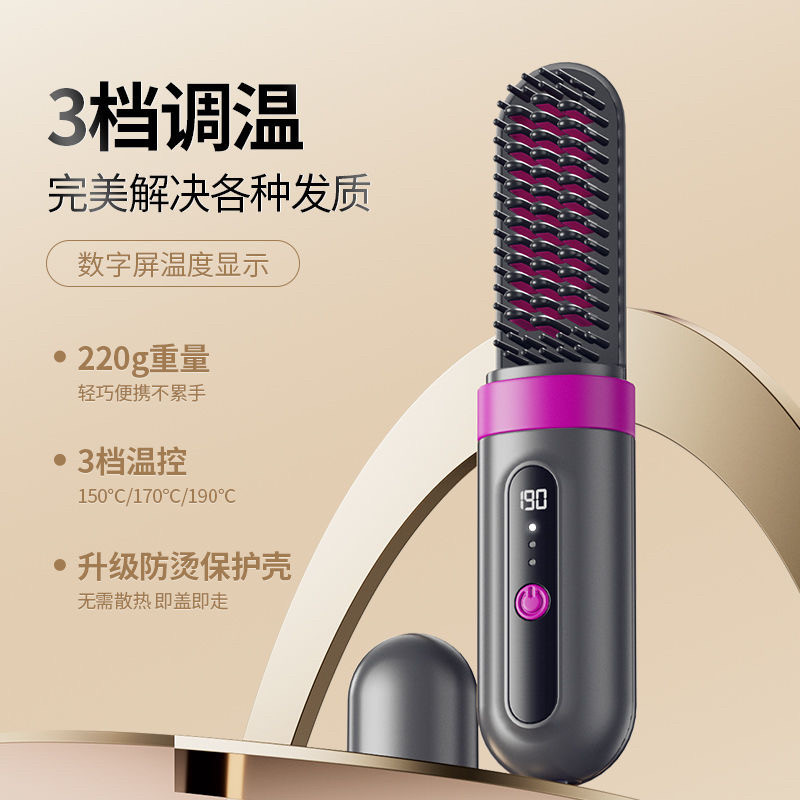 跨境液晶无线直发梳造型充电电梳子直发器便携负离子不伤发发热梳