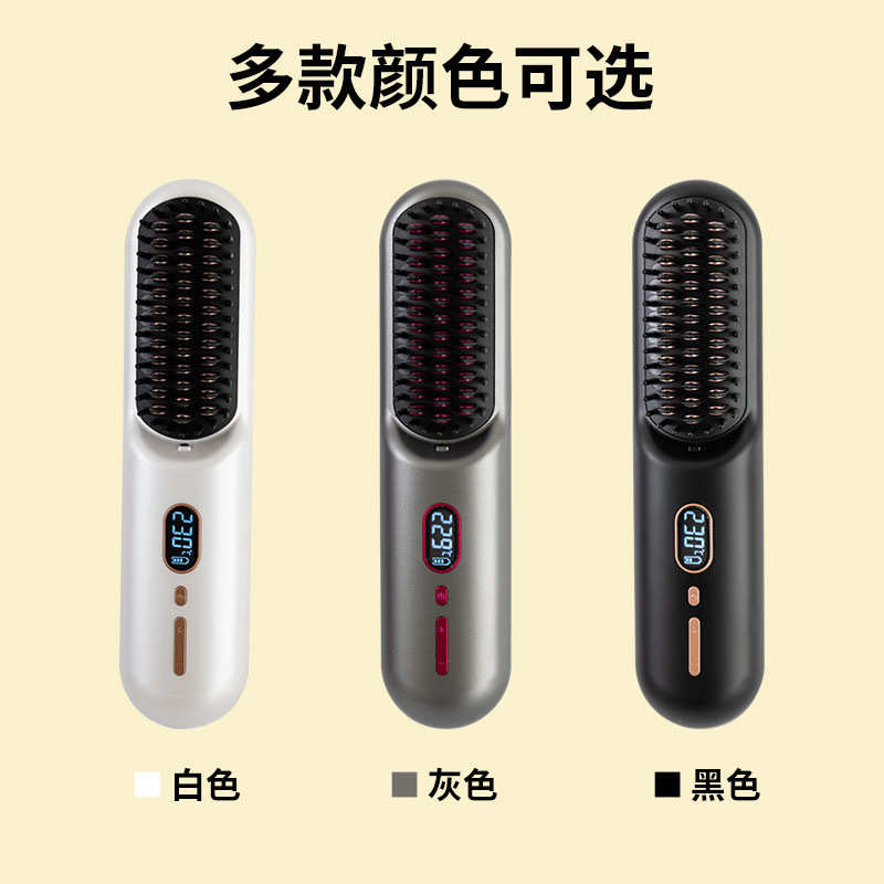 跨境液晶无线直发梳造型充电电梳子直发器便携负离子不伤发发热梳