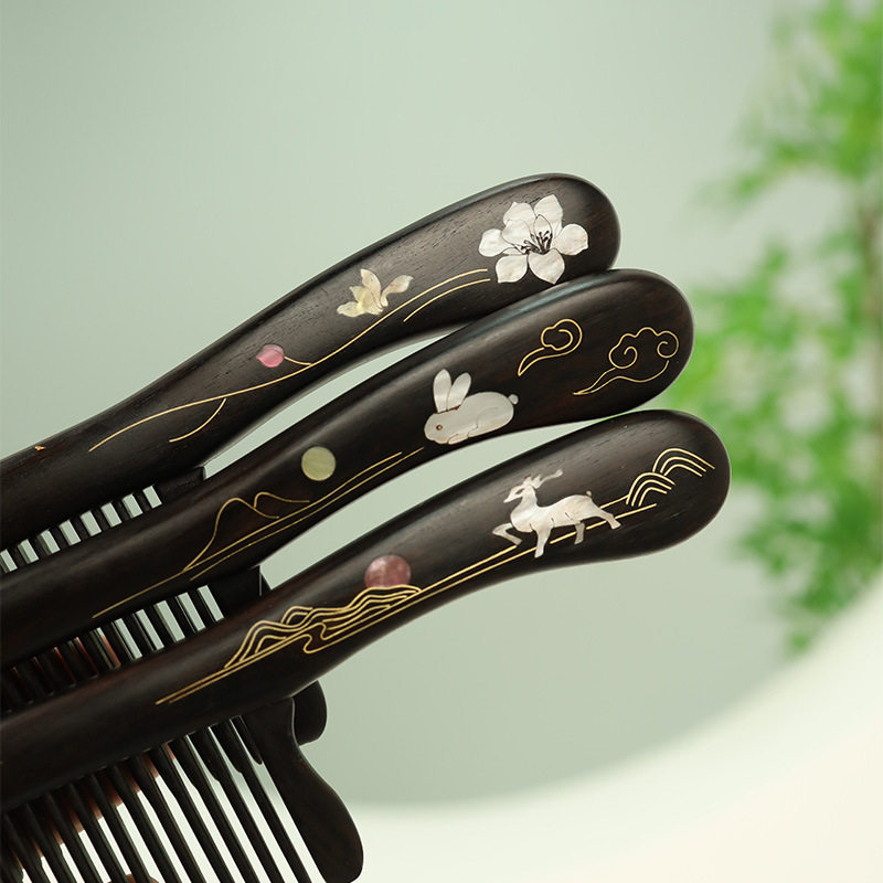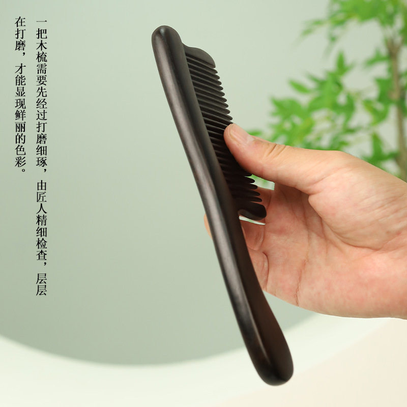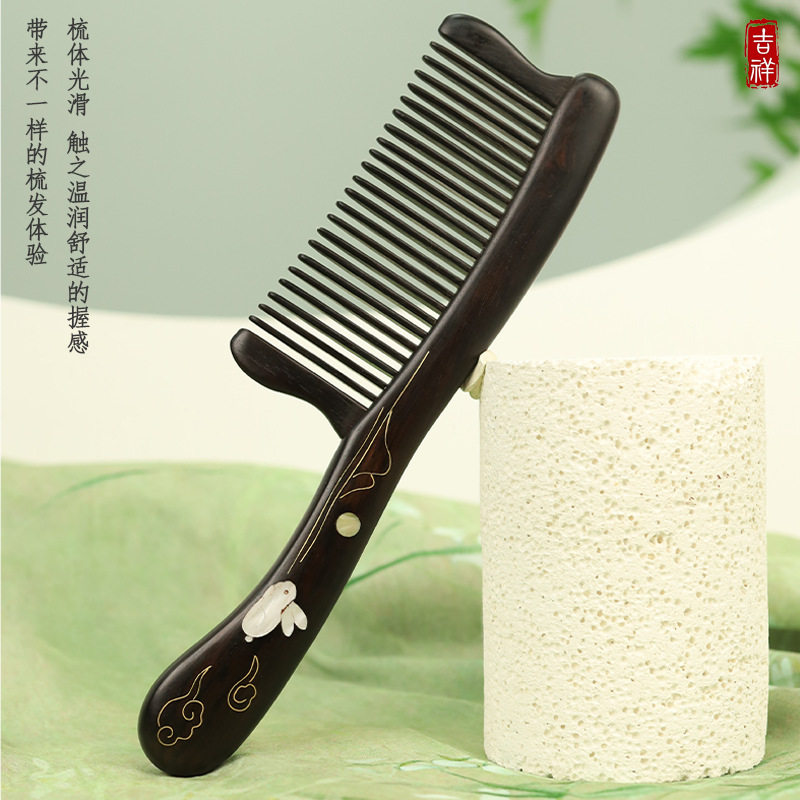 这款天然紫光檀木梳子,精选优质乌木匠心打造,木质细腻温润,纹理深邃如夜空繁星,泛着天然紫光,彰显高贵典雅。梳子采用传统手工雕刻技艺,结合现代彩绘工艺,在梳背精心镶嵌精美图案,线条流畅,寓意吉祥,兼具艺术美感与实用价值。每一把梳子均由匠人手工打磨,圆润无刺,贴合头皮,梳理舒适,促进头部血液循环。天然檀木自带淡淡幽香,长期使用有益身心。无论是自用还是馈赠亲友,这款雕刻彩绘木梳都是一件极具品位的家居精品,寓意“梳去烦恼,留下安康”,是传递心意与祝福的绝佳礼品,彰显东方美学与生活雅趣。