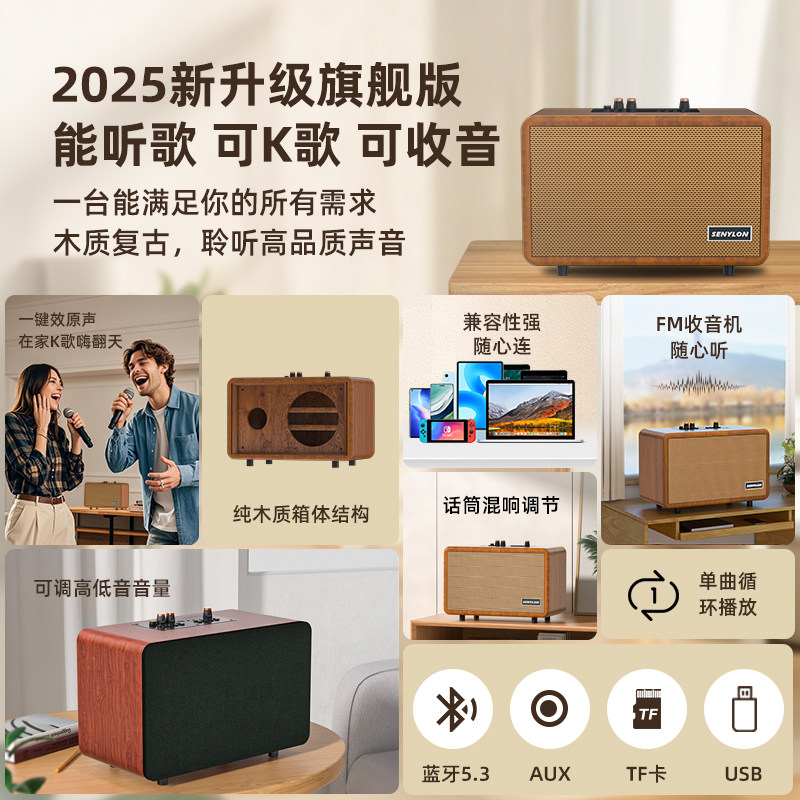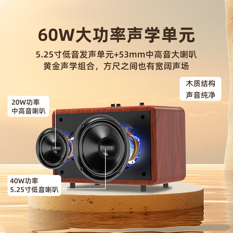 这款木质蓝牙音箱融合复古美学与现代科技,采用优质实木箱体,不仅质感温润,更有效减少共振,提升音质表现。支持蓝牙5.0无线连接,兼容多种设备,传输稳定流畅。内置高保真全频喇叭与强劲低音单元,实现高音清澈、中音饱满、低音深沉的立体环绕音效,音量充沛,适合家用客厅、聚会或户外使用。兼具复古收音机外观设计与实用功能,支持AUX、TF卡等多种播放模式,操作简单便捷。无论是聆听音乐、观看影视,还是作为家居装饰,它都能带来沉浸式听觉享受与优雅复古氛围,是品质生活的理想之选。