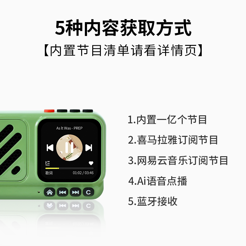 朝元喜马拉雅听书神器蓝牙音箱新款网络收音机便携式音响低音炮,集多功能于一体,专为热爱阅读与音乐的用户打造。支持蓝牙5.0连接,兼容手机、平板等设备,内置喜马拉雅海量有声资源,一键直达听书、新闻、音乐等内容。配备强劲低音炮单元,音质浑厚饱满,带来沉浸式听觉体验。内置高容量锂电池,续航持久,支持TF卡、AUX音频输入及网络收音机功能,户外、居家皆适用。轻巧便携设计,搭配防滑底座,稳固耐用。无论是晨练、旅行还是居家休闲,这款音箱都是您随身享受高品质声音的理想之选。