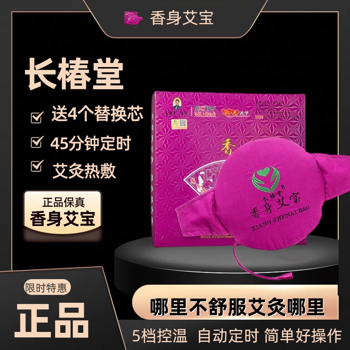 淘宝长椿堂香身艾宝磁石官网正品艾灸宝暖宫热敷包热敷袋护腰带艾草包