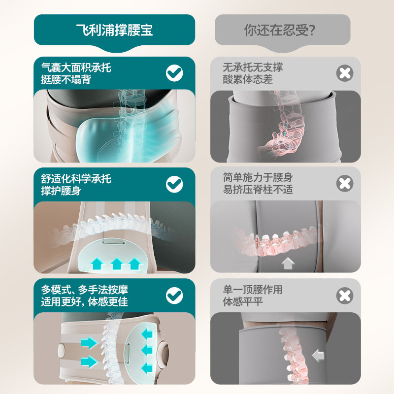 天猫飞利浦撑腰宝腰部按摩仪暖宫腰带气囊护腰缓解腰疼神器圣诞礼物
