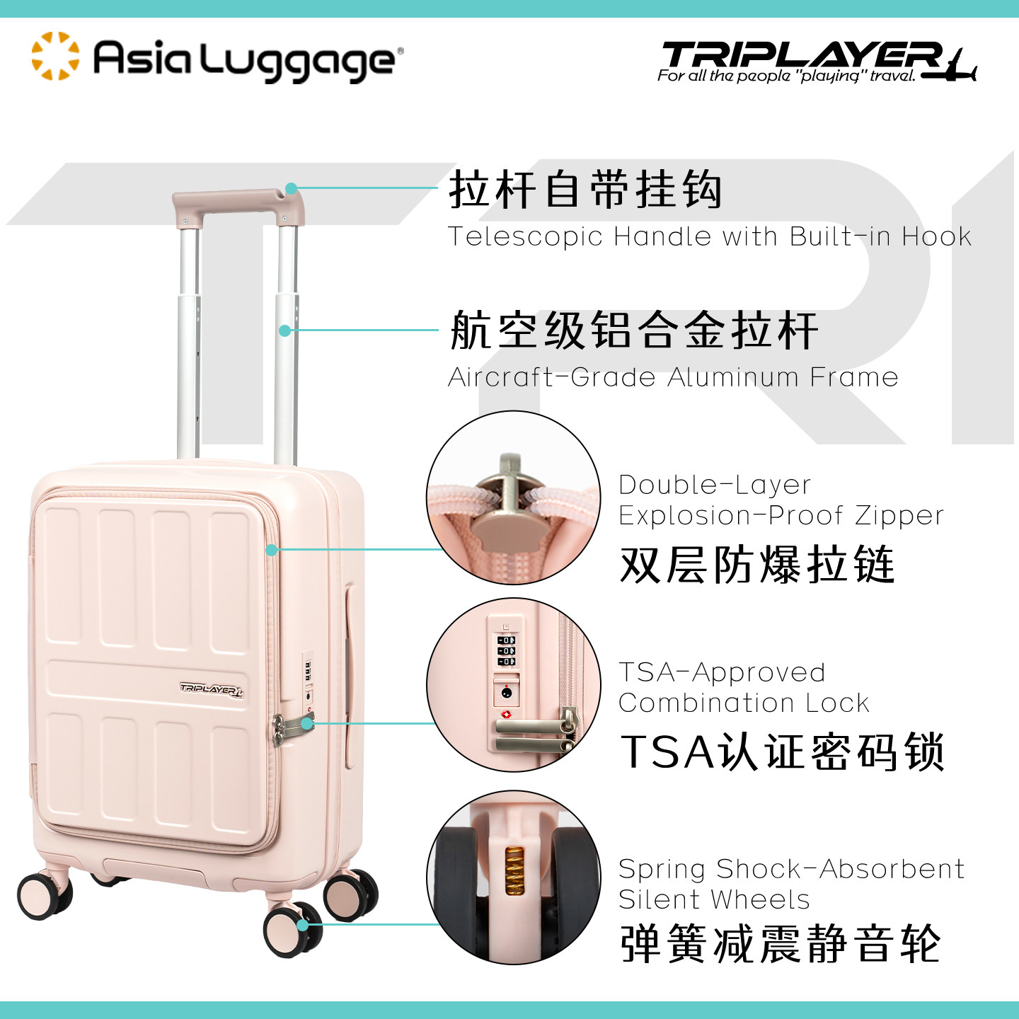 这款超大容量耐磨耐摔加厚前开行李箱,专为女性旅行设计,兼具实用与时尚。采用高强度PC+ABS材质,加厚箱体结构,抗压耐摔,有效保护箱内物品。前开式设计方便快速取物,尤其适合安检或临时整理。支持扩容功能,轻松应对购物需求。配备360°静音减震万向轮,顺滑静音,推行省力。多段式铝合金拉杆,稳固耐用,握感舒适。内部布局合理,分区收纳,整洁有序。无论是短途出行还是长途旅行,都能满足大容量、高安全性的需求,是现代女性出行的理想伴侣。