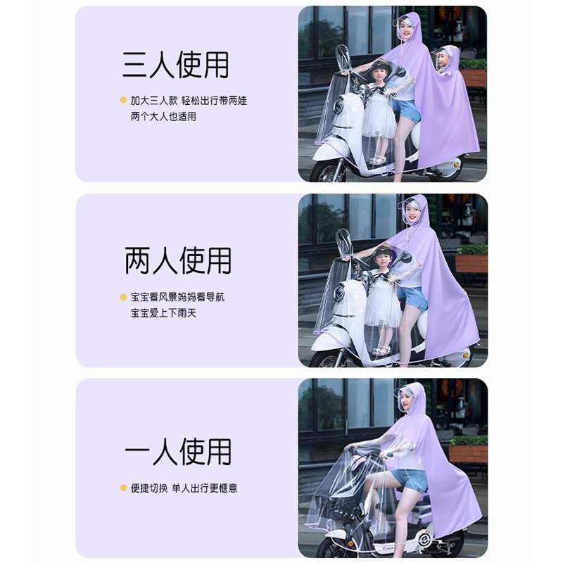 天猫电动车雨衣母子亲子双人长款全身防暴雨专用女电瓶摩托车三人雨披