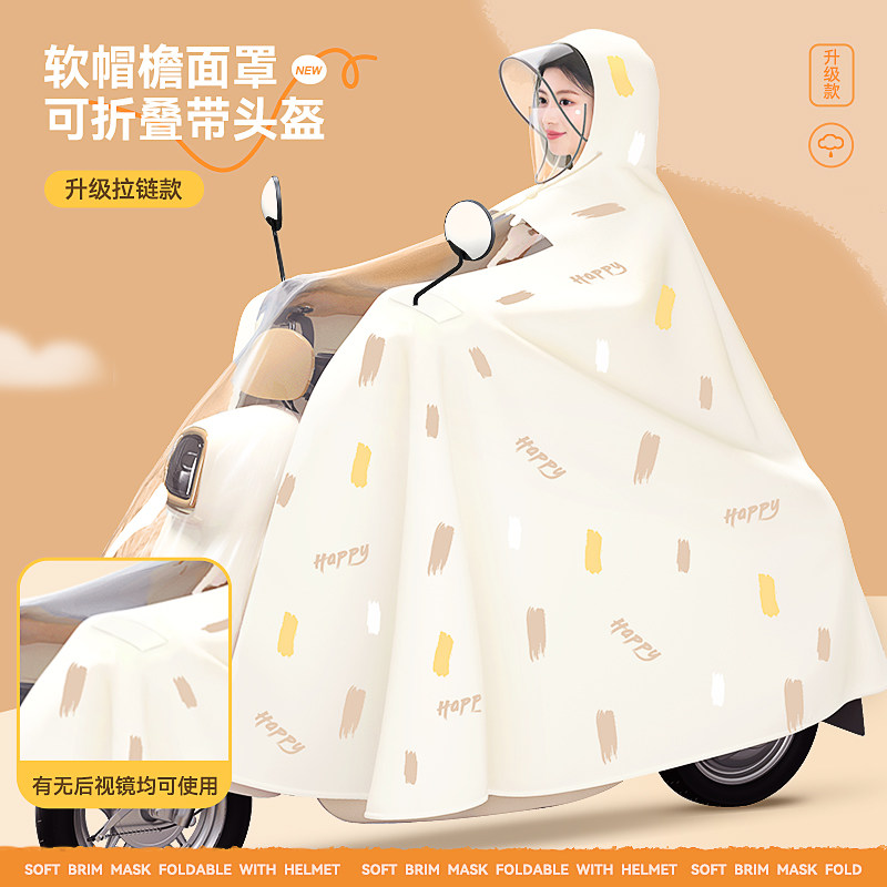 这款专为成人骑行设计的电动车雨衣,采用长款全身防护结构,有效覆盖电瓶车及骑行者全身,抵御暴雨侵袭。加大加宽版型,兼容各类电动车、摩托车,穿着宽松舒适,不束缚动作。高密度防水面料结合精细压胶工艺,确保接缝处滴水不漏,长时间骑行也能保持干爽。背部设有透气孔,减少闷热感,提升穿着体验。反光条设计增强夜间骑行安全性。男女通用,实用性强,是雨天出行的理想选择。无论是日常通勤还是长途骑行,这款雨披都能为您提供全面、可靠的防护,让雨天出行更安心、更便捷。