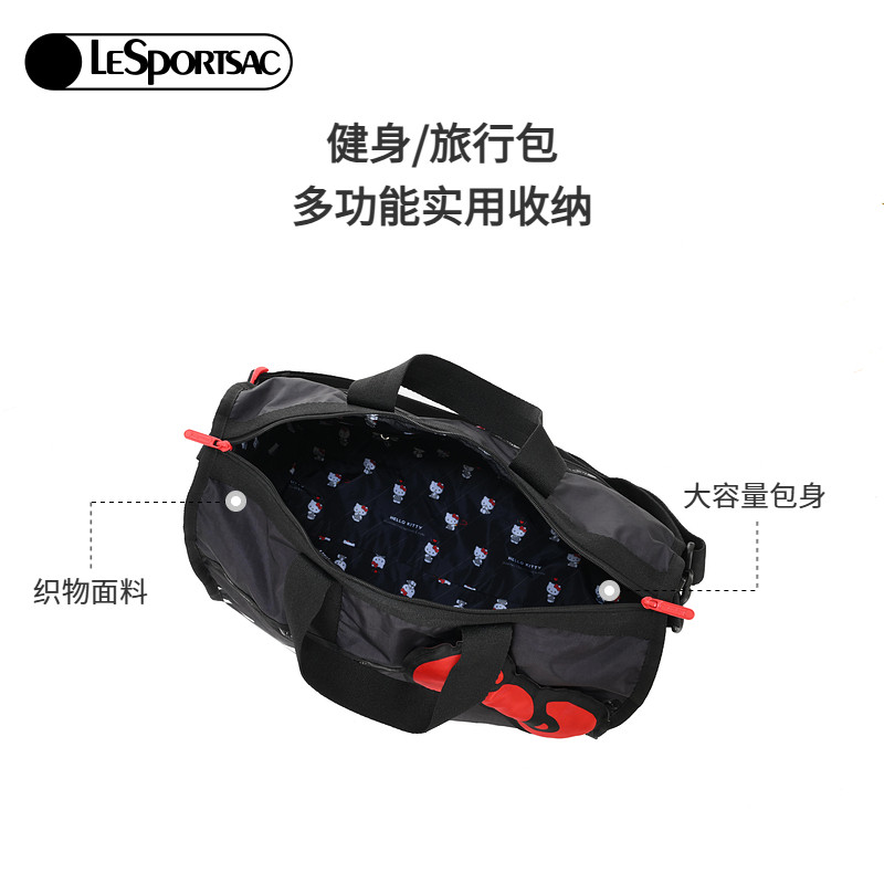 天猫洪潇同款LeSportsac乐播诗HelloKitty凯蒂猫黑色大容量旅行斜挎包