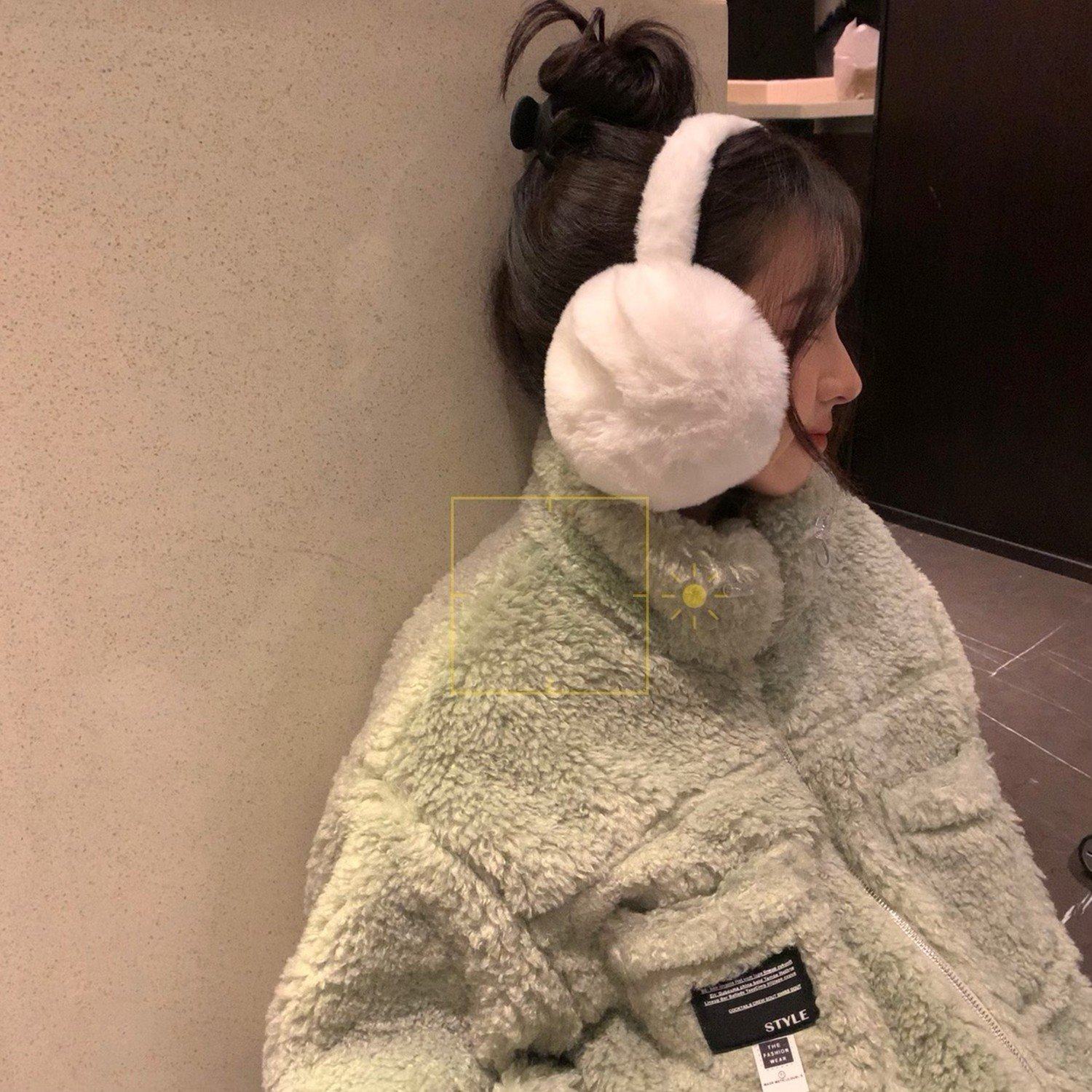 毛绒耳罩冬男女冬季保暖耳包护耳朵耳捂子可折叠学生耳套白色防风