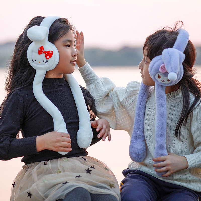天猫兔耳朵会动保暖耳罩库洛米玉桂狗网红气囊耳罩防寒防冻保暖耳包