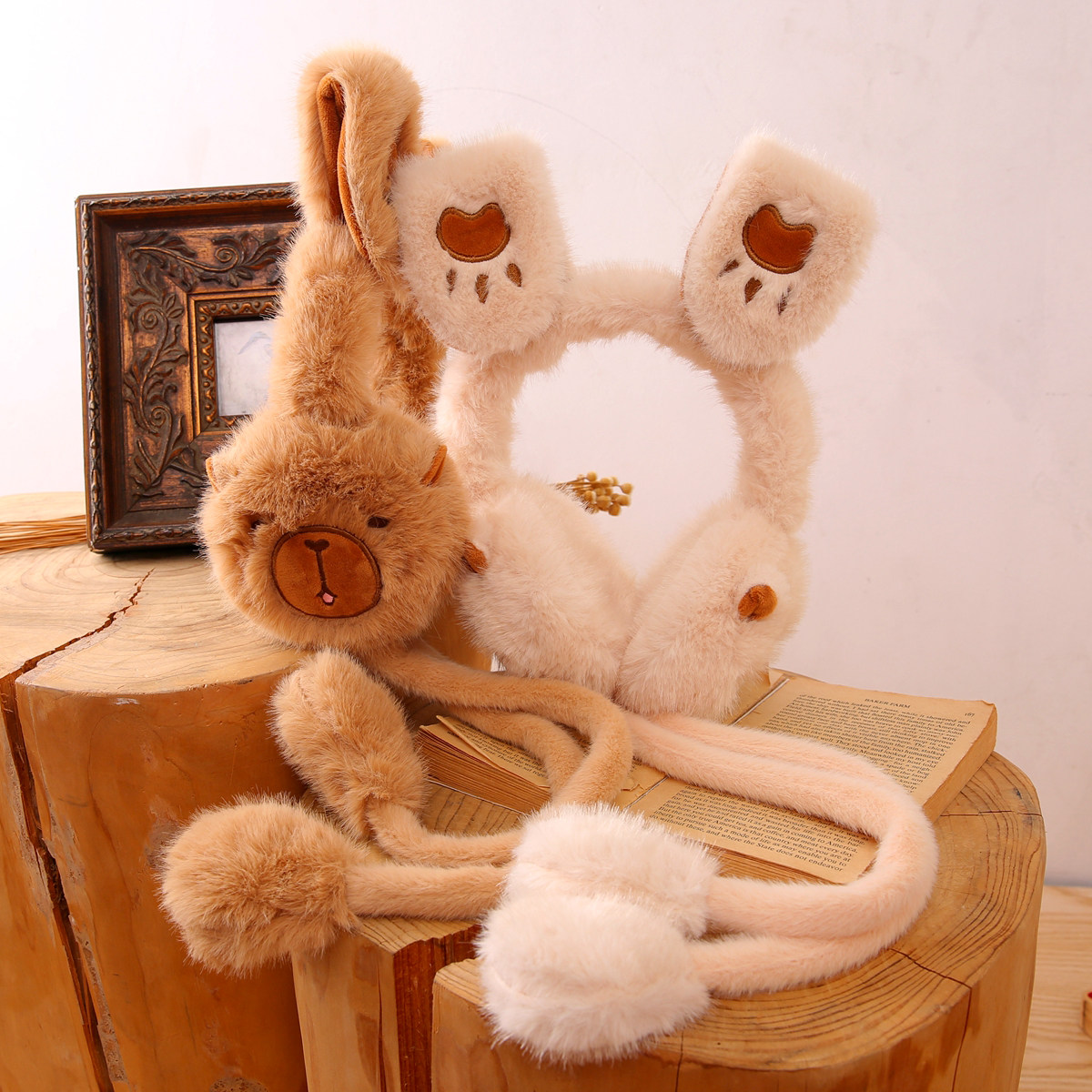 天猫卡皮巴拉保暖耳罩冬季可爱防冻男孩儿童耳暖耳捂子气囊耳朵会动女