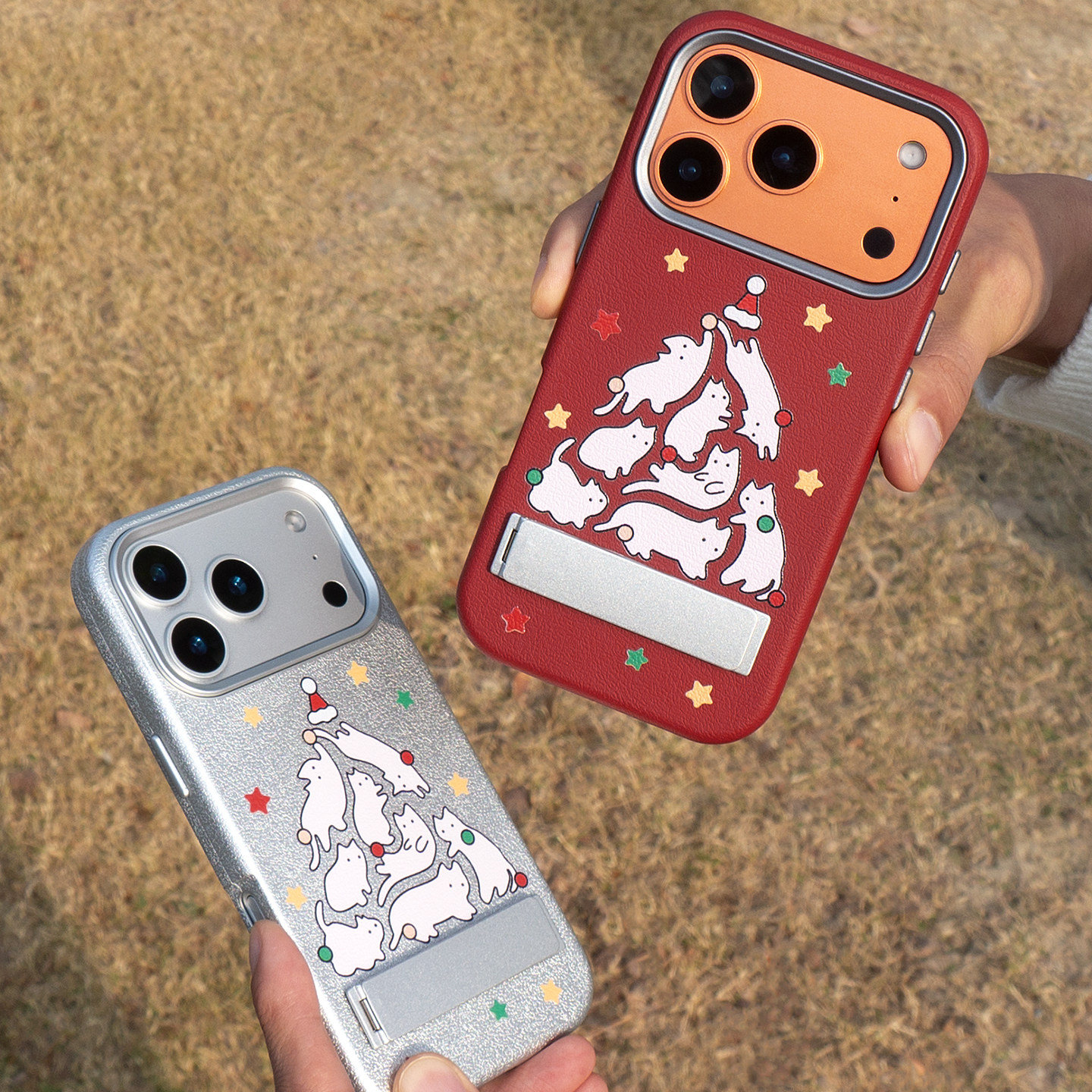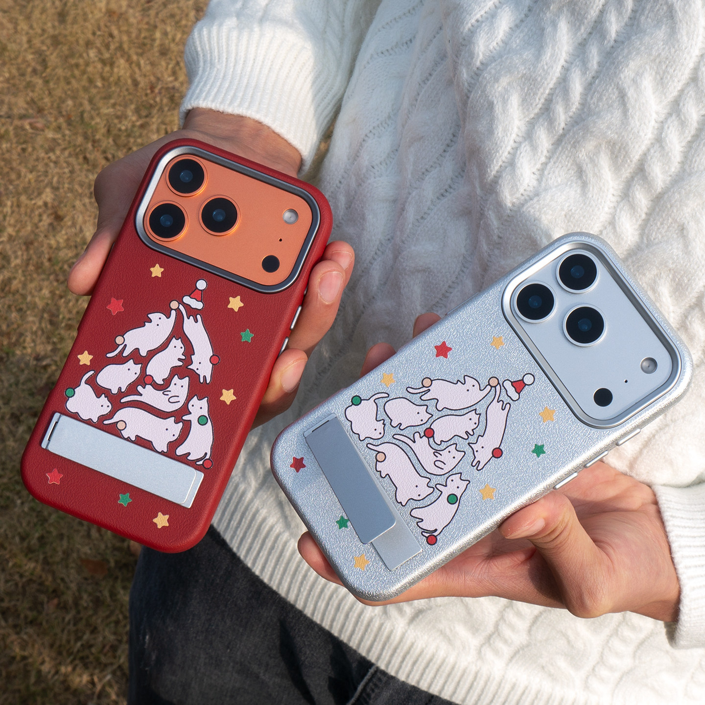 这款casegood原创设计的圣诞树猫咪苹果主题手机壳,专为iPhone 14/15/16及17 Pro Max等多机型打造,采用一体支架折叠设计,兼具实用与美观。红色款节日氛围浓郁,银色款则简约高级,适合情侣搭配,彰显小众品味。外壳融合圣诞树、萌猫与苹果元素,图案精致耐看,防摔抗震材质全面保护手机。折叠支架功能支持横竖自由摆放,追剧、视频通话更便捷。轻盈贴合机身,按键灵敏,开孔精准。无论是自用还是送礼,这款兼具颜值与功能的高级保护套,都能为日常增添一抹温馨与趣味。
