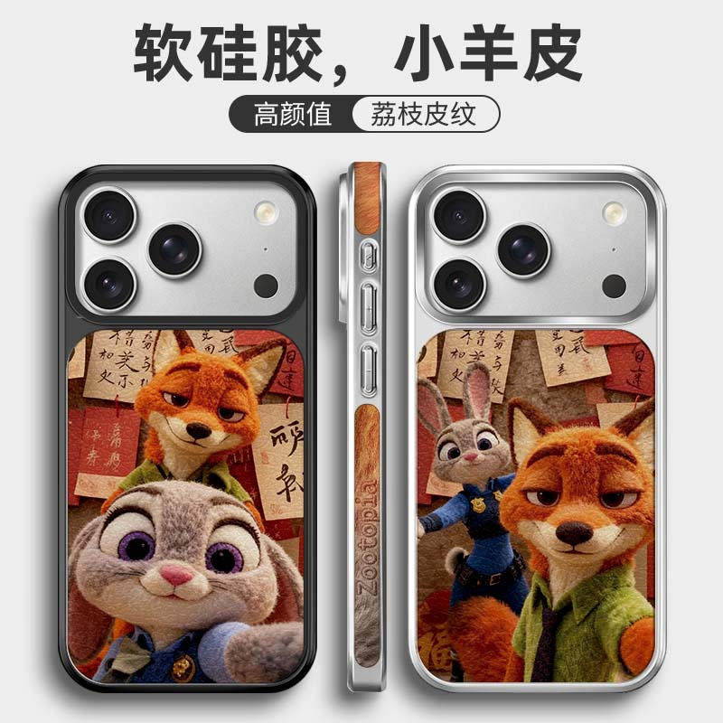 天猫疯狂动物城2适用苹果17手机壳iphone16硅胶小羊皮13pro兔子警官14promax狐狸尼克15朱迪14侧边17pro情侣款air