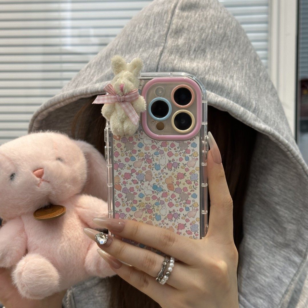 天猫冬日碎花毛绒兔新款适用苹果17Pro手机壳iPhone16max13小米15华为mate80pura70k90note14荣耀400x300一加ace5