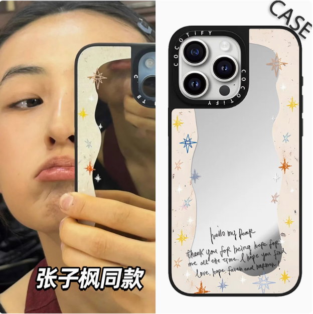 天卡通面包甜筒星星人围边适用苹果17/16ProMax手机壳新款iPhone17pro少女可爱14pm补妆镜面13防摔女款15保护套