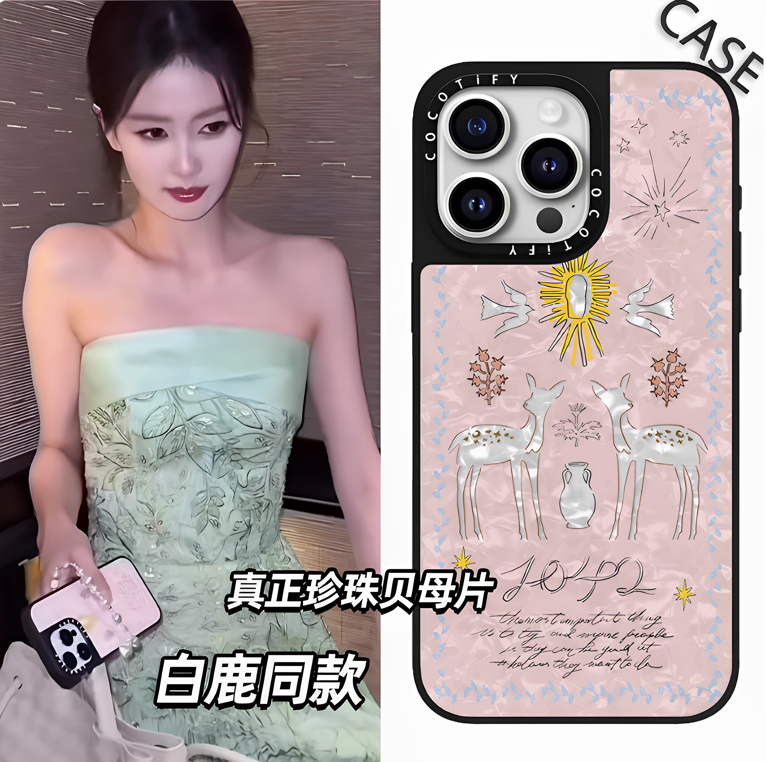 淘宝C联名白鹿同款森林秘境贝母壳新款iPhone17女16plus保护套苹果16promax手机壳适用14镜面磁吸13/12全包防摔女