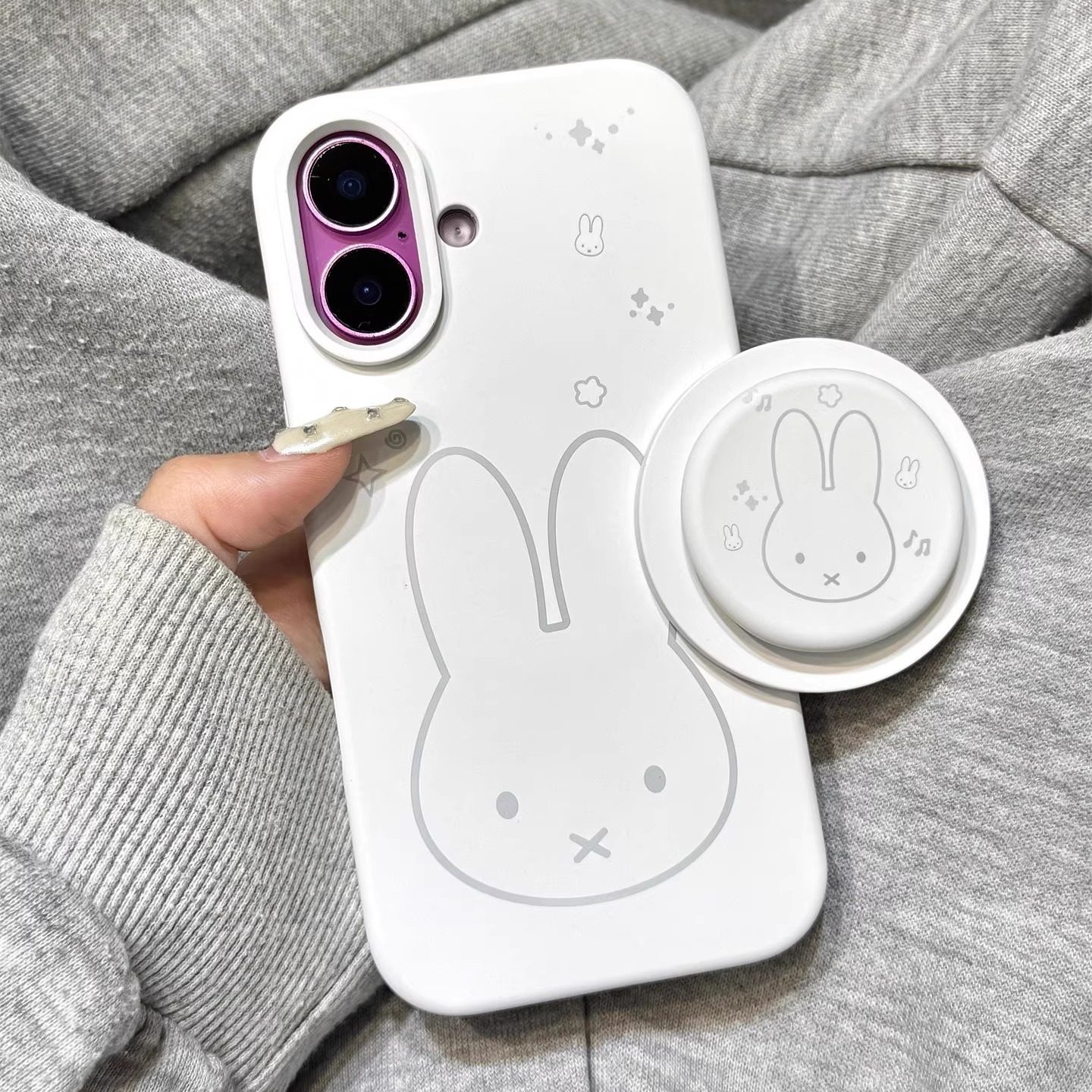 淘宝简约风ins白底线条米菲兔磁吸支架适用苹果17promax手机壳iphone16新款15pro女款14pm全包保护壳
