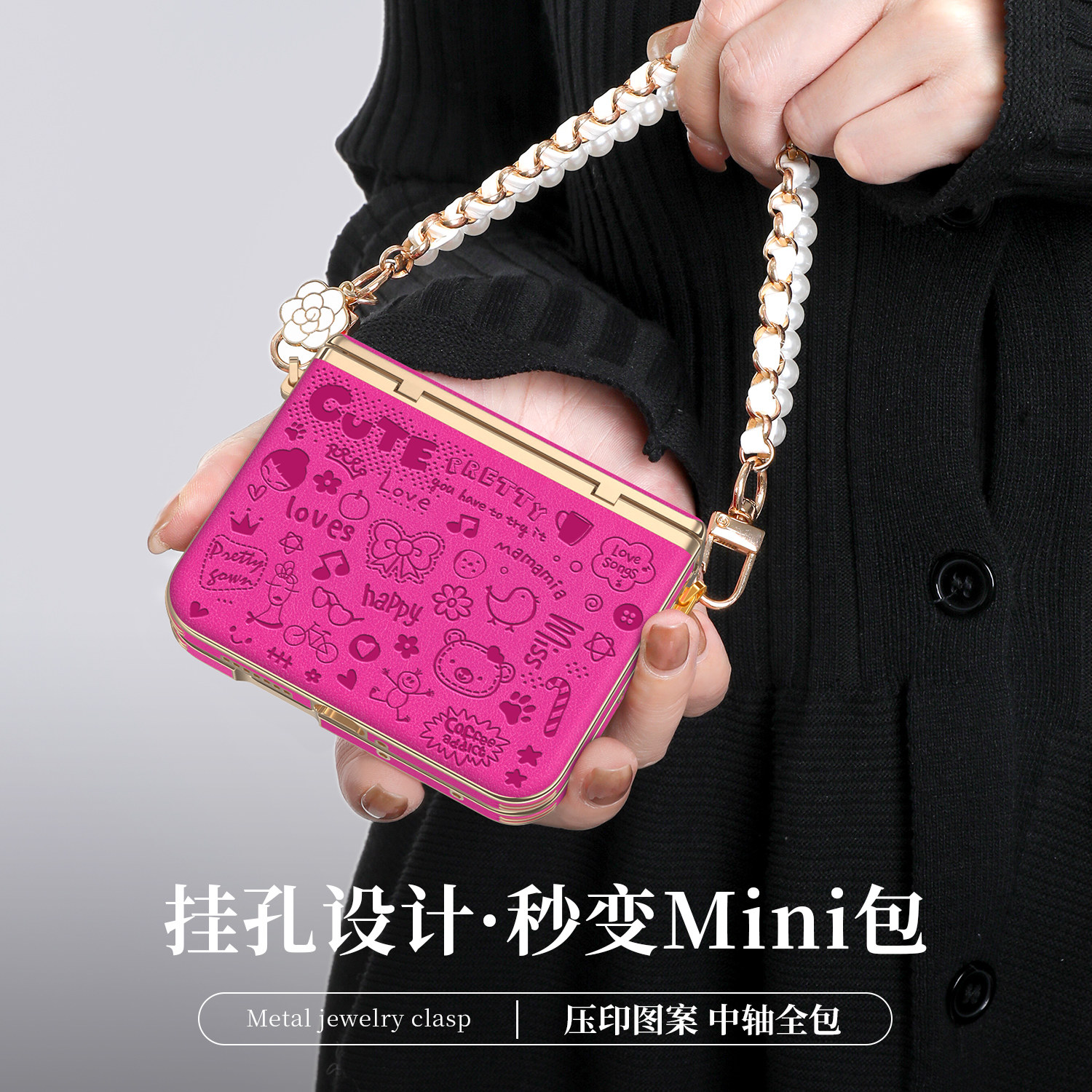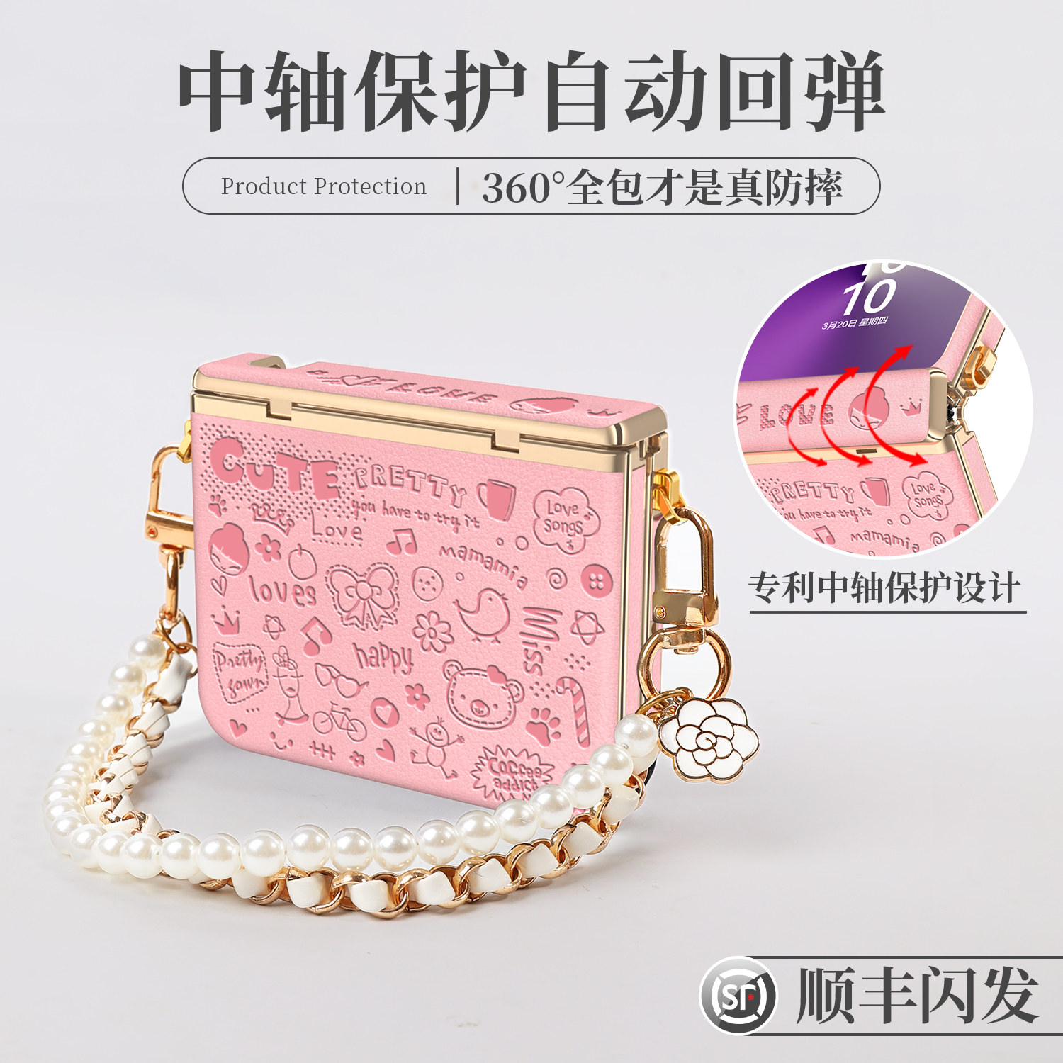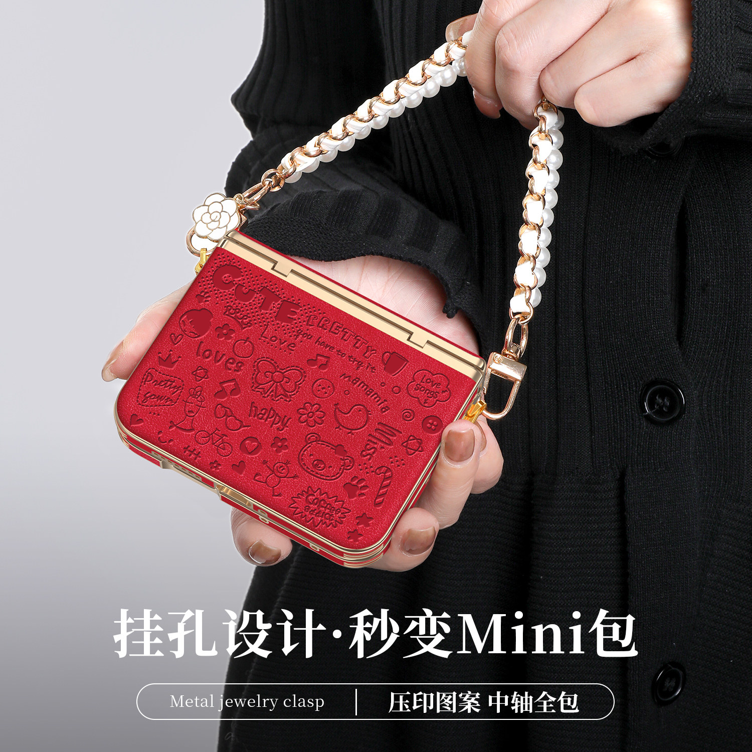 天猫2026新款压印卡通适用华为purax手机壳高档皮质pura典藏版x折叠屏高级感可爱浮雕中轴全包保护套带挂绳女秋冬