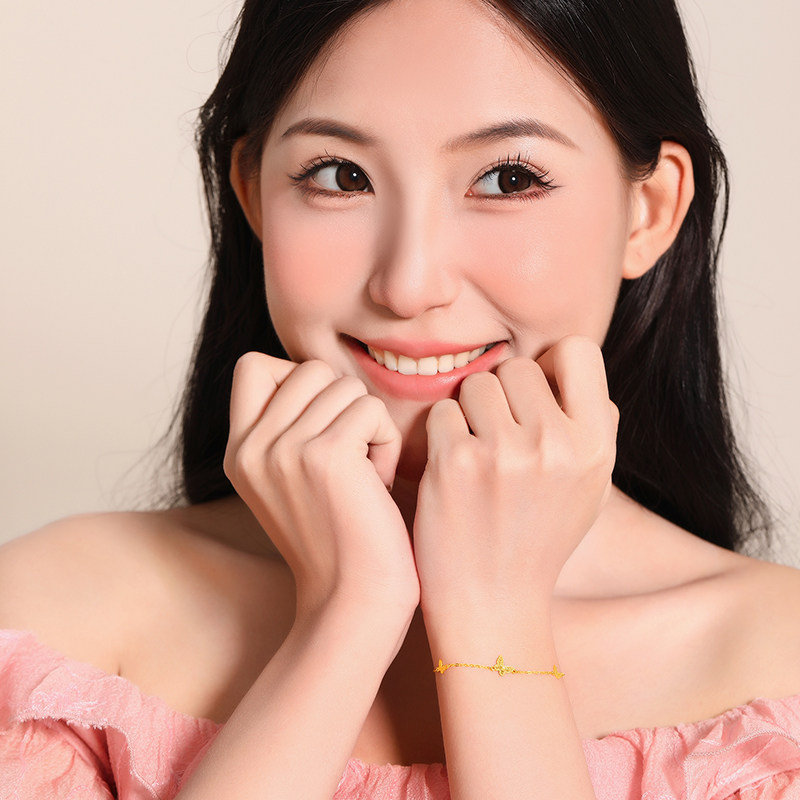 天猫梦金园18K金蝴蝶手链女AU750彩金正品立体手环手饰生日礼物送女友