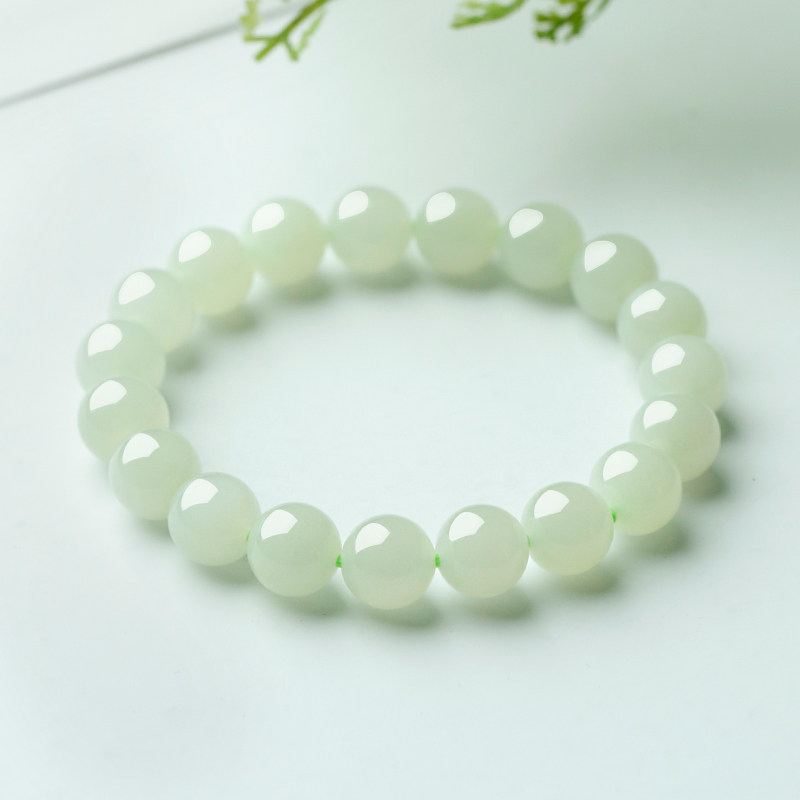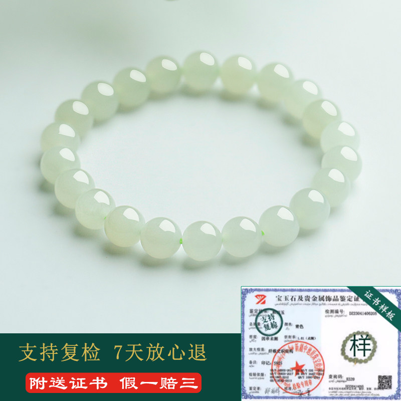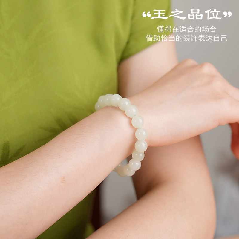 天猫玉说和田玉冰晴水手串女款圆珠玉石手链圆满富贵玉手饰附证书